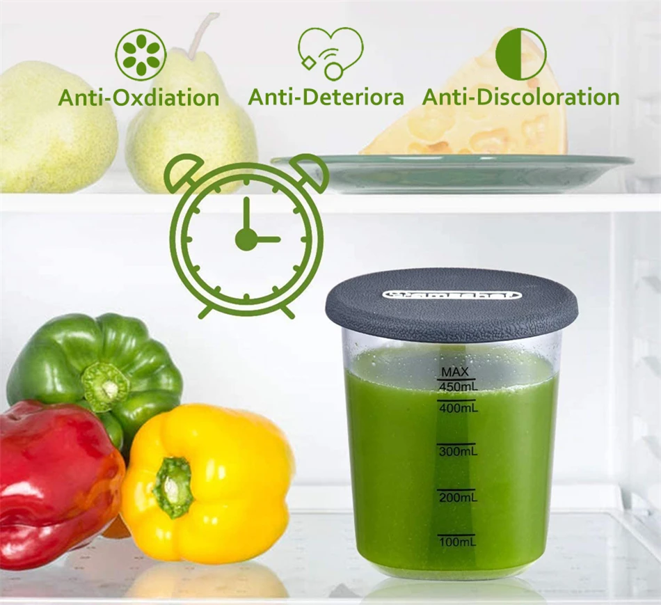 Медленная мастикация и небольшая подача желоба могут не только извлекать более 90% сока и сушильной массы, сохраняя максимальное количество питательных веществ из фруктов и овощей, но и уменьшая скорость окисления. Кроме того, наша чашка для сока имеет силиконовое покрытие для пищевых продуктов, которое может помочь эффективно снизить скорость окисления сока. Вы можете просто положить свежий сок в холодильник после сока и свежесть сока будет храниться до 72 часов!