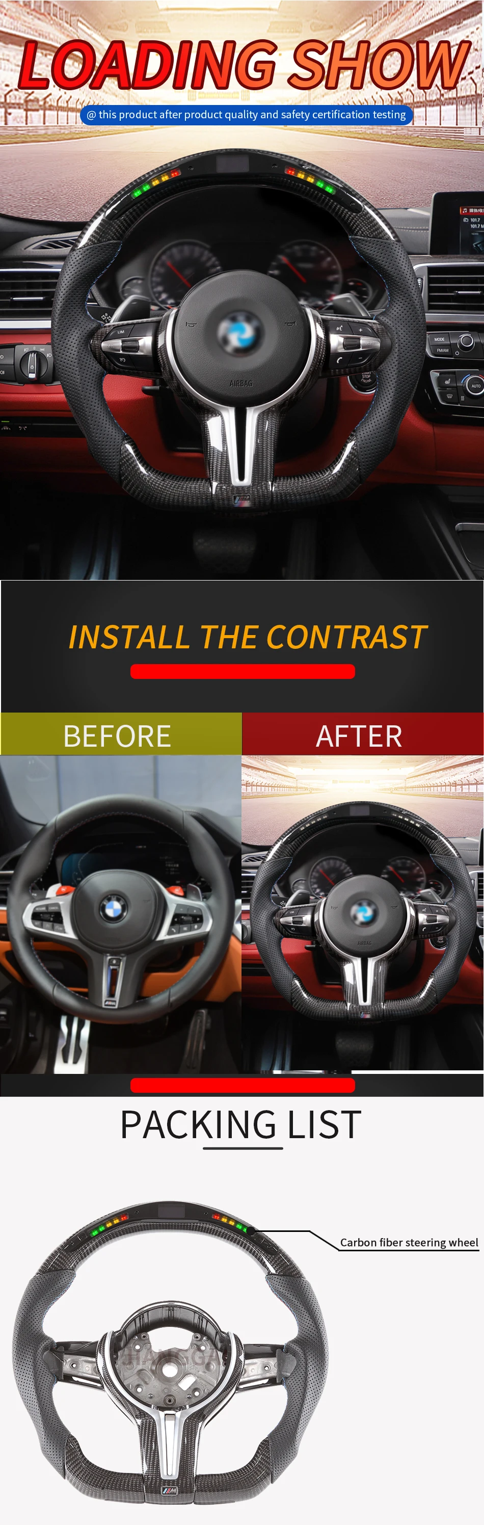 Светодиодный продукт преимущества Импортный светодиодный лампы, бусины, устойчивость к воздействию высоких температур, длительный срок службы, full HD, без мертвых зон, съемная светодиодный светильник комплект, легко ремонт и техническое обслуживание, индивидуальный логотип загрузки, OBD-2 Передача данных модуля является стабильной и быстрой, легко устанавливается, подходит для широкого спектра моделей, отображения информации о приборе, Напоминание о сигнале поворота, напоминание об опасности на светильник и т. Д. Список товаров: 1. Светодиодный сердечник рулевого колеса + Панель Отделки + задний пластик (за исключением подушки безопасности, кнопок, весла) Стиль продукта: если вам нужны другие индивидуальные продукты, добро пожаловать в нашу службу поддержки клиентов, общее время настройки составляет 15 рабочих дней Технические параметры Рабочее напряжение: 12V-16V Рабочий ток: основная плата <40 мА/дисплей <25 мА Ток покоя: 3 мА Применимая температура: -40 ℃ ~ + 85 ℃ Рабочая частота: 2,4 ГГц Расстояние срабатывания: 10 м Основная функция 1. Пробой расхода топлива 2. Восприятие угла руля 3. Динамическая передача рулевого управления 4. Запись времени 5. Динамическое измерение скорости 6. Запись гоночного пробега 7. Презентация информации о двигателе 8. Настройка конкретной информации 9. Примерный пробег 10. Турбо-дисплей Особенности 1. Совершенно новый дизайн, без сломанных проводов и установки штепсельной вилки 2. Двухъядерный дизайн, низкое энергопотребление и более надежный 3. Технология беспроводной частоты 2,4G является более стабильной 4. Реализовать взаимодействие человека и транспортного средства 5. Качество автомобиля Стиль: Материал: светодиодный руль Состояние на 100% абсолютно новый Тип товара: рулевое колесо Применимый Предмет: (1 серия F20/F21/F40) (2 серии F22/F23/F45/F44) (3 серии F30/F31/F35) (4 серии F32/F33/F36) (X1 F48/F49) (X2 F39) (X3 F25) (X4 F26) (X5 F15) (X6 F16) (3 серии GT F34) (M2 F87) (M3 F80) (M4 F82/F83) Примечание: Руль не включает подушки безопасности, кнопки, весла.