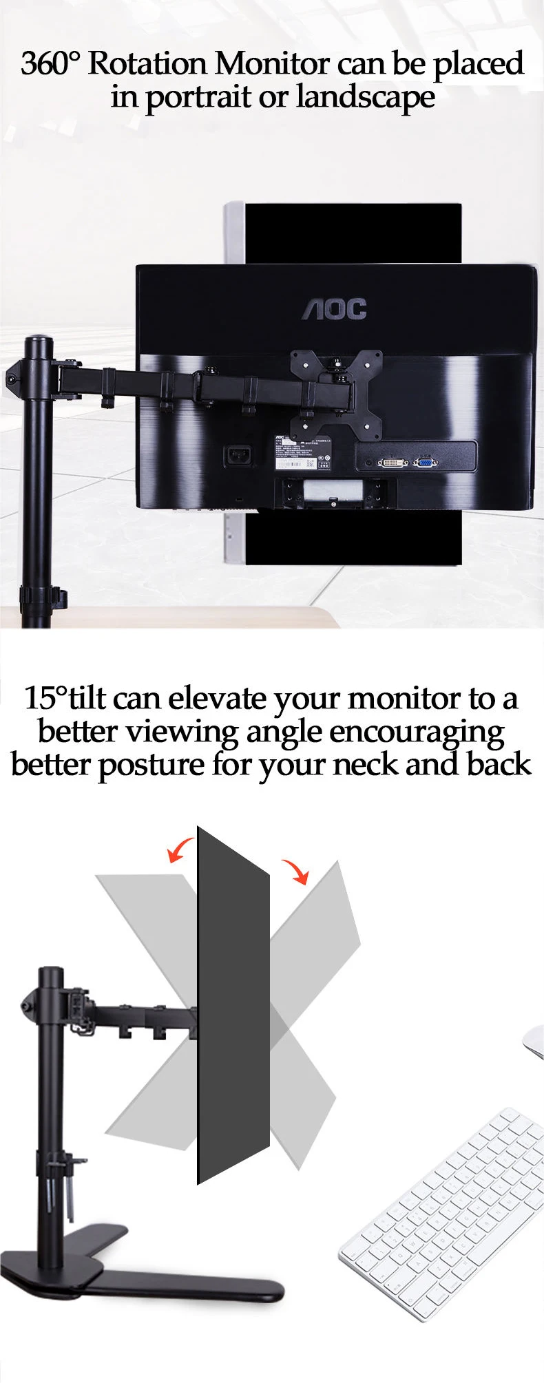 Прочная стальная конструкция обеспечивает отличную поддержку и долговечность для двух компьютерных мониторов (от 10 до 27 дюймов) весом до 22 фунтов каждый с крепежными отверстиями VESA 75x75 мм и 100x100 мм. Полностью регулируемые рукоятки монитора обеспечивают наклон от-90 до + 90 градусов, поворот на 360 градусов и вращение на 360 градусов для оптимальных углов обзора. Мониторы могут быть помещены в портретную или Ландшафтную ориентацию. Интегрированное управление кабелем вдоль центрального полюса помогает держать грязные шнуры организованными Двойной монитор позволяет вам вернуть ценное настольное пространство и повысить эффективность работы, получив два монитора с вашего стола и подняв до удобной высоты обзора. Автономное основание обеспечивает максимальную стабильность установки рабочей станции, а нижняя боковая подкладка включена для защиты поверхности вашего стола от потертостей и царапин. Простая установка-установка вашего монитора-это простой процесс с открытым верхним слотом VESA plate. Мы предоставляем все необходимые инструменты и оборудование для легкой сборки
