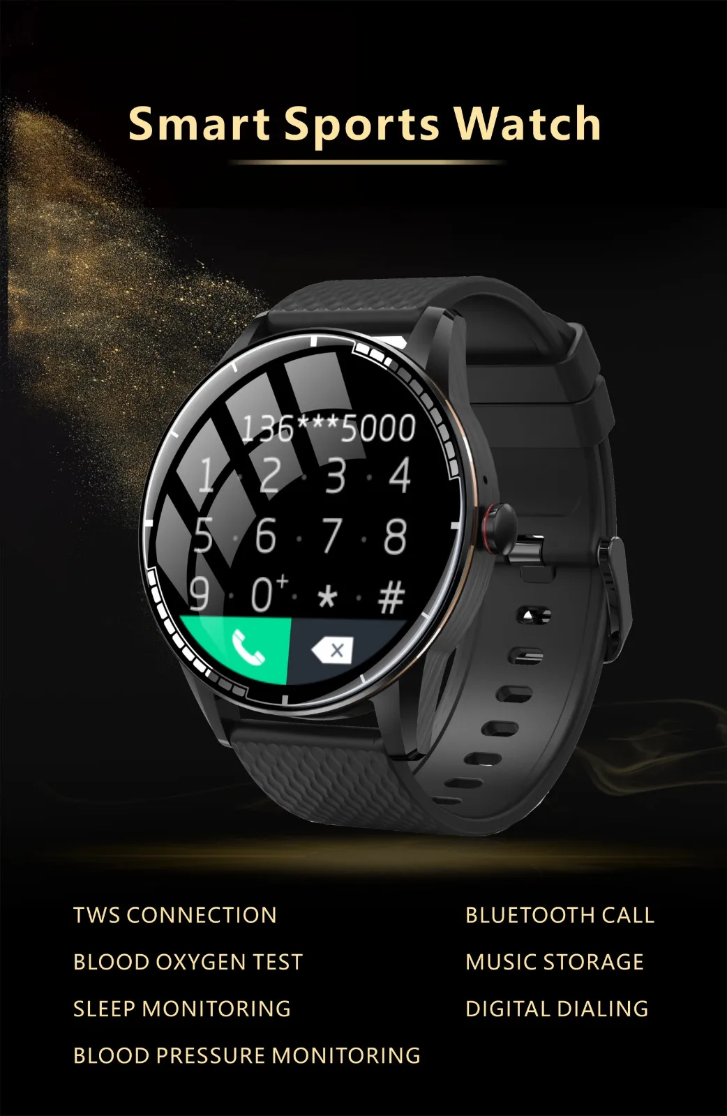 Размер экрана: 1,28 дюйма полный Сферический сенсорный экран