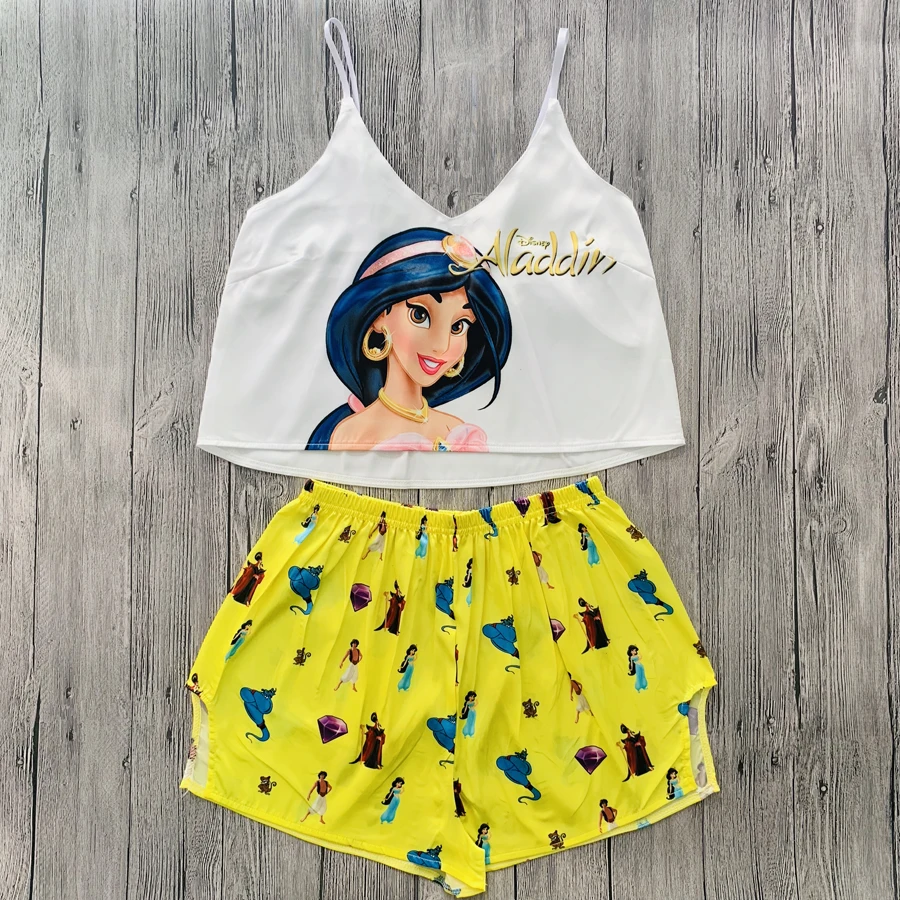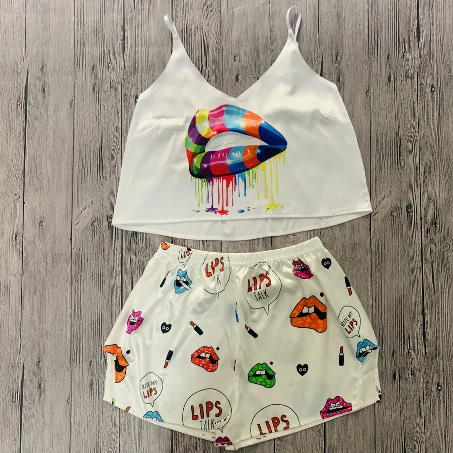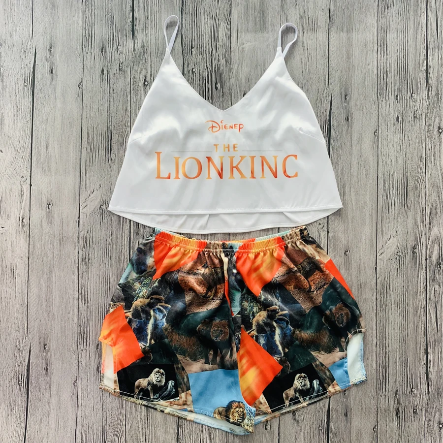 2021НовейшийМилая Пижама с рисунком животных, летняя Пижама с v-образным вырезом, сексуальная женская пижама на тонких бретелях, свободная атласная пижама с кошкой