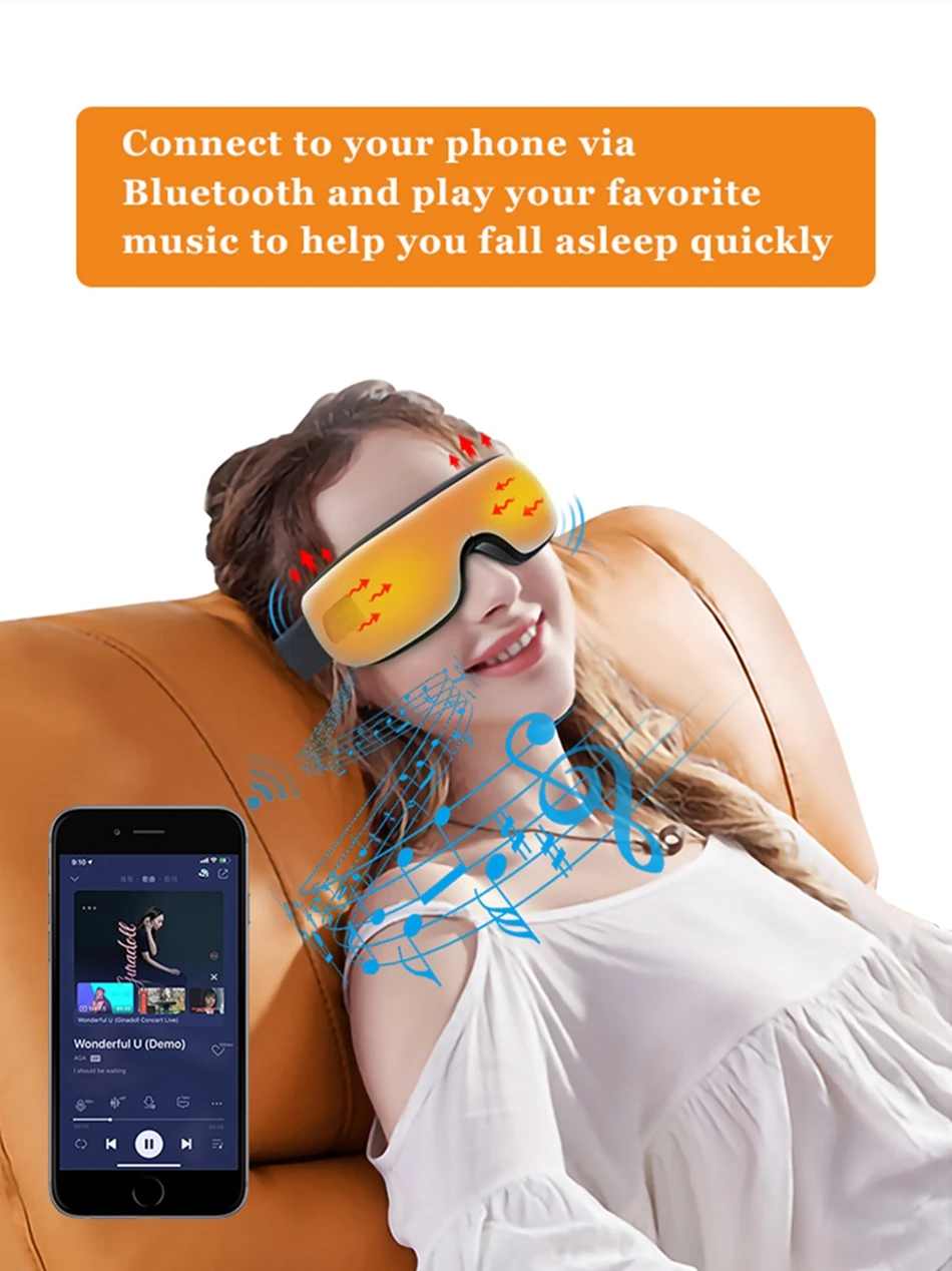 Массажер для глаз, постоянная температура, компрессионный массажер, Bluetooth, музыкальные очки, акупрессуры, снимают усталость и улучшают сон