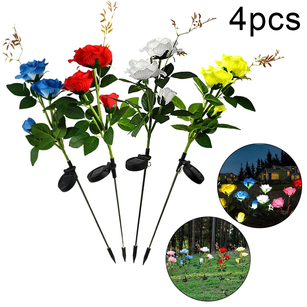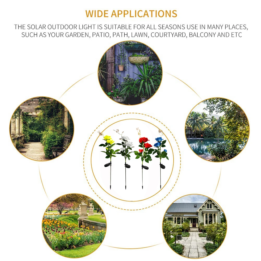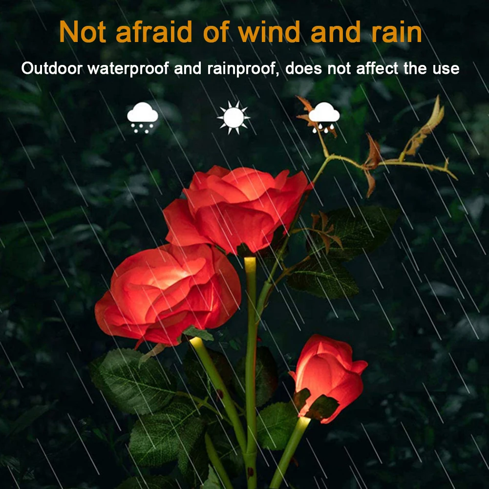Наружные солнечные огни имеют Красочные розы и реалистичные листья, прочный стержень может прослужить дольше.