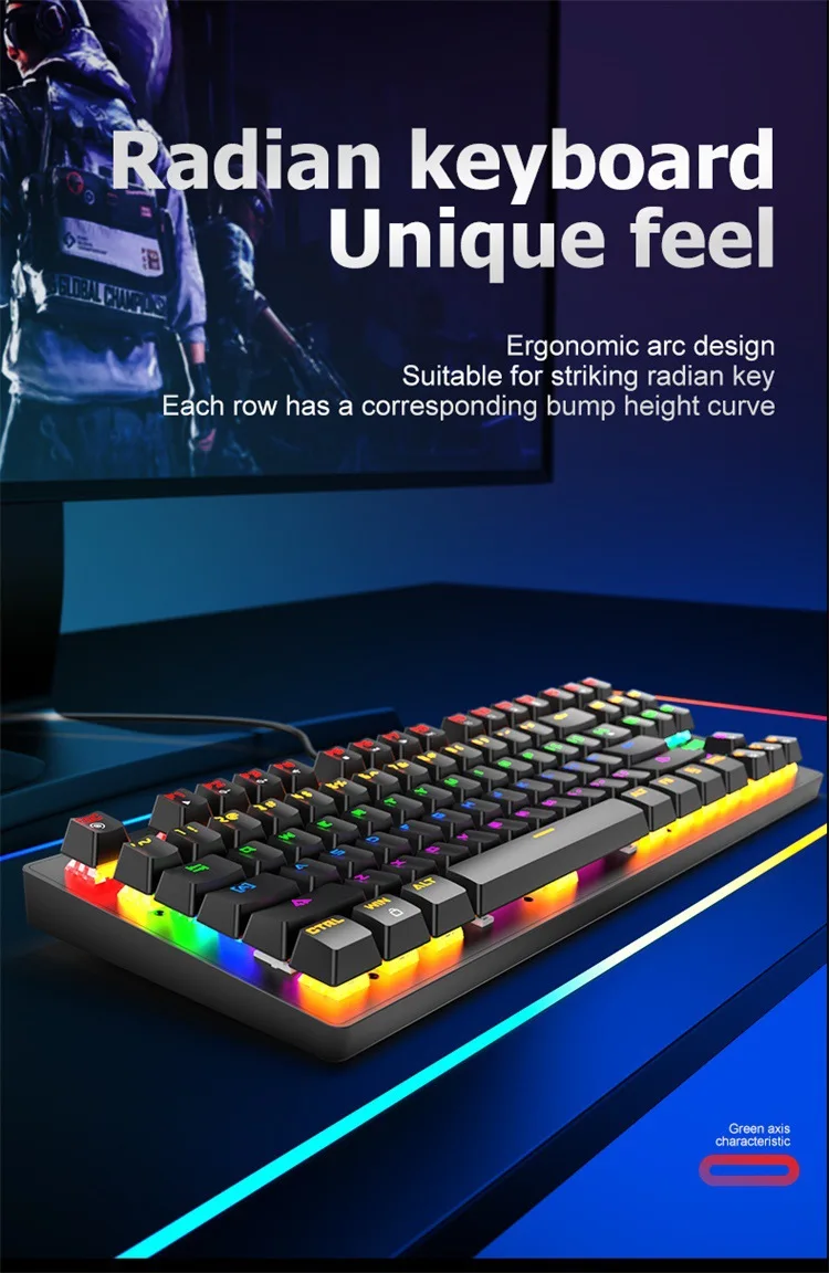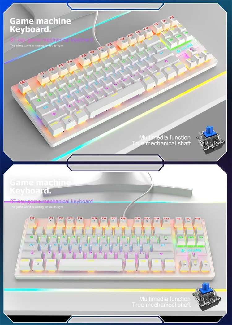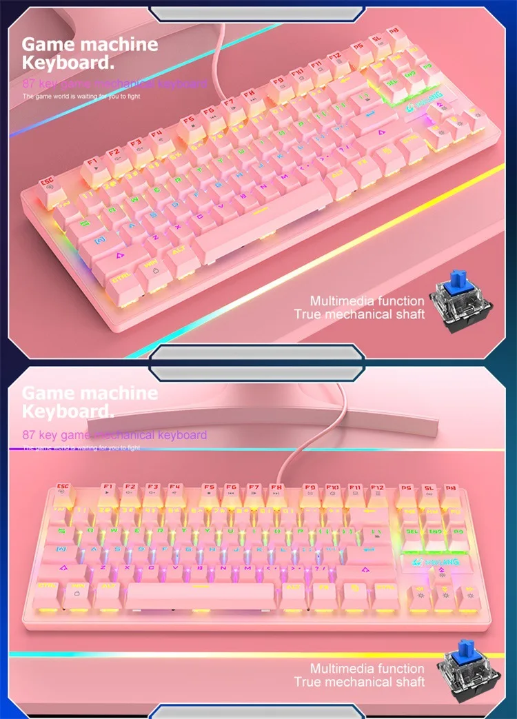 Новая игровая Механическая Проводная клавиатура 87-клавишная зеленая ось USB интерфейс RGB подсветка подходит для геймеров ПК ноутбуков девчачьих розовых