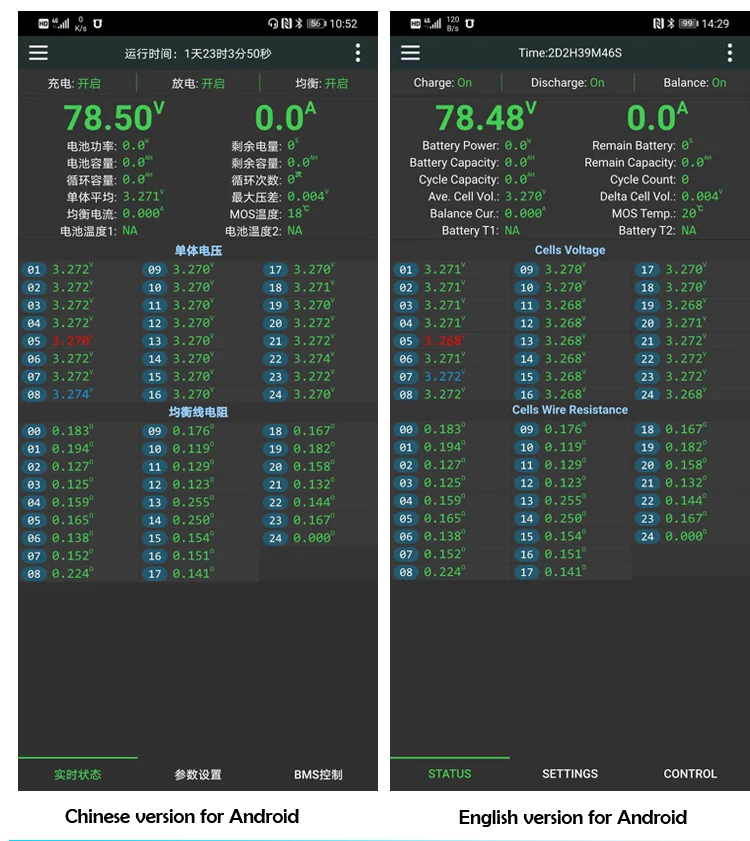 13S-10S 60A 0.6A : 13S до 20 S 60A непрерывный ток 0.6A баланс