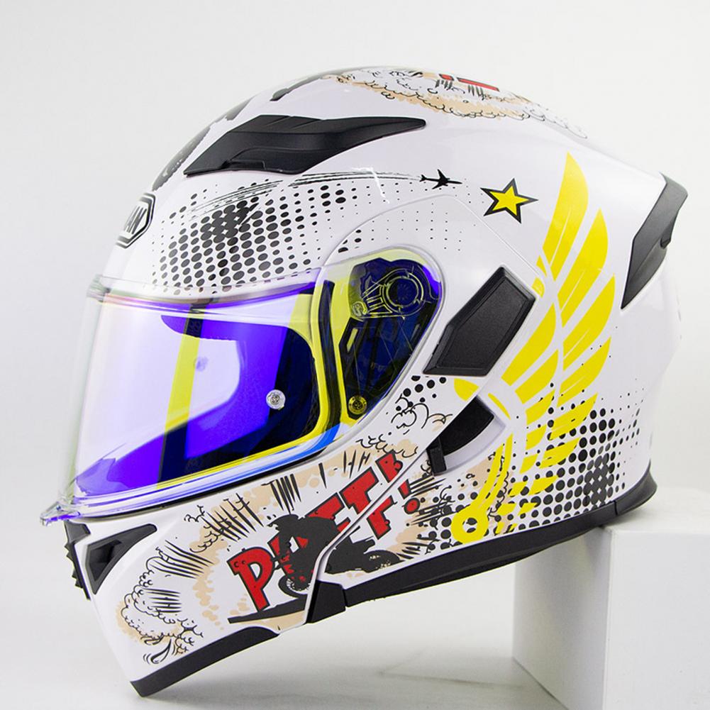 Объектив мотоциклетного шлема изготовлен из высококачественного поликарбоната и металлического материала, гибкий и противотуманный.
