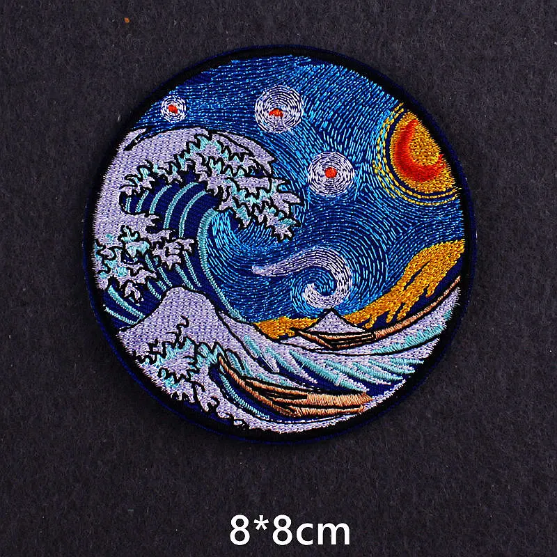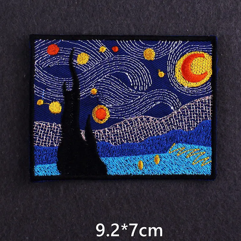 Ван Гог вышитые нашивки утюгом на куртке значки аппликаций горы нашивки на одежду DIY уличные нашивки с натуральными полосками