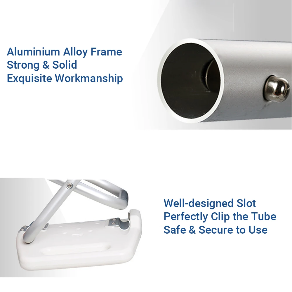 Складной и компактный:Всего несколько простых операций могут сложить стул, что обеспечивает удобство хранения и максимально увеличивает ваше драгоценное пространство для ванной комнаты.