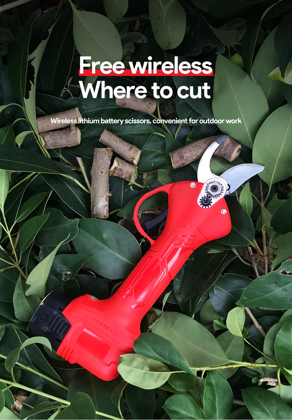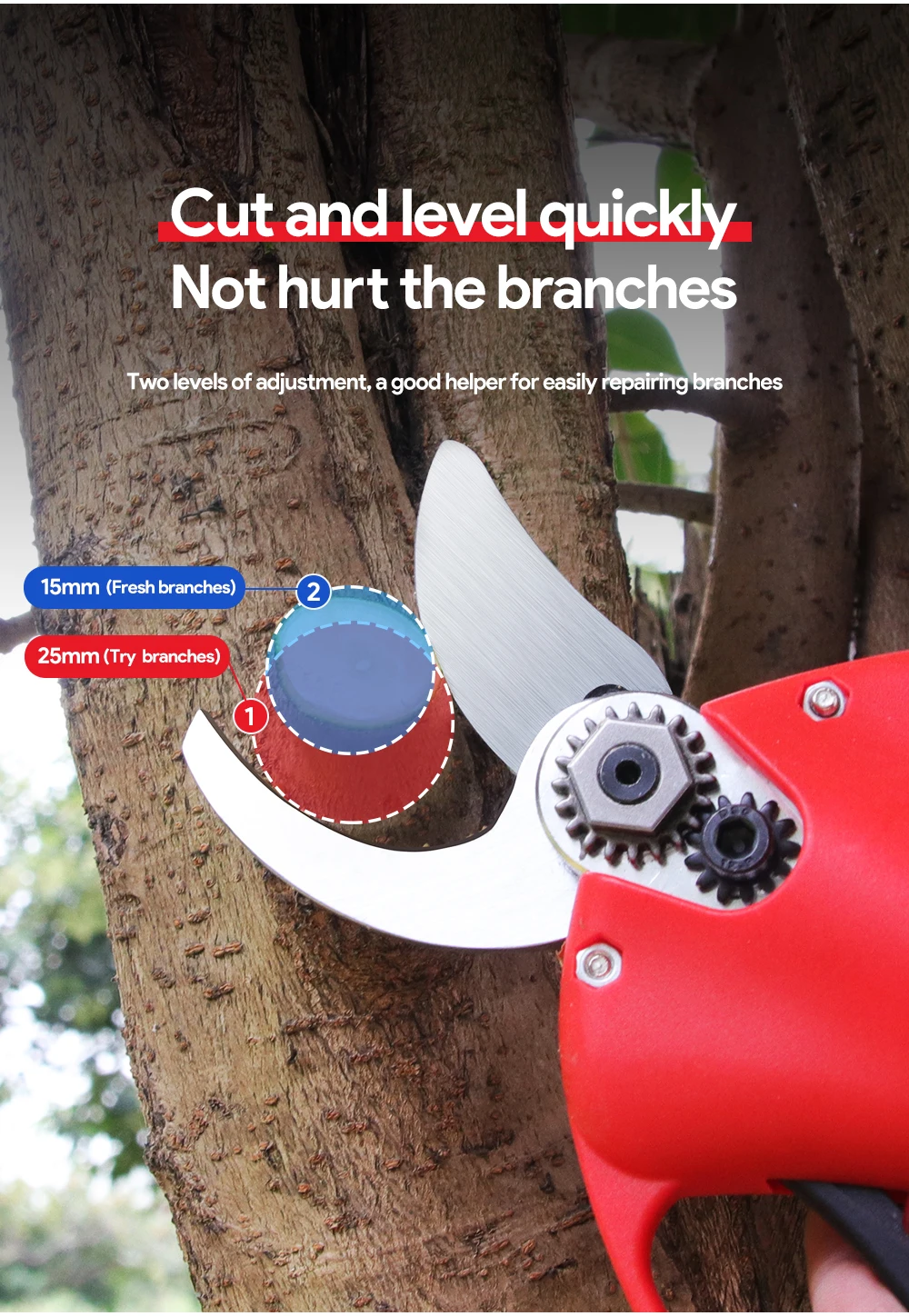 Наименование товара: электрические секаторы Рабочее напряжение: DC16.8V Вес изделия: 0,9 кг Аккумулятор: 16,8 в Ач Тока напряжение: AC100-240V Время зарядки: 2-3 ч Время работы: 6-8 ч Диаметр резки: 15 ~ 25 см