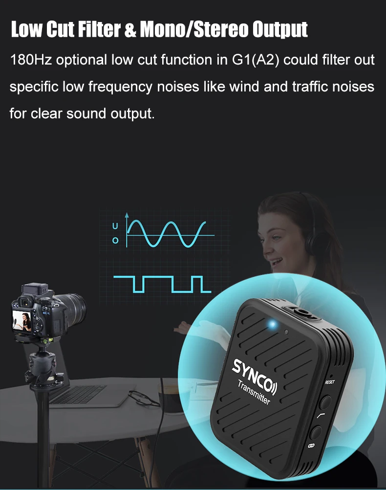 🎤【Фильтр с низким вырезом и моно/стерео output】превосходное качество звука! 180 Гц Опциональная функция низкой резки в G1(A2) может фильтровать специфические низкочастотные шумы, такие как шум ветра и движения, для четкого звукового выхода. Специальные меховые ветровые стекла предлагаются для минимизации фонового шума. G1(A2) Специально имеет моно/стерео режимы для выбора, легкий для пост-обработки. 🎤【 Мониторинг в реальном времени и 4-уровневая получить регулировки】the ресивер 3,5 мм ТРС для наушников для мониторинга эффект записи во время съемки в режиме реального времени. 0-4 Приемник уровня усиления с диапазоном регулировки до 8 дБ позволяют простой и эффективной оптимизации уровней сигнала. 🎤【 50 м передачи & DSP Technology】 G1(A2) два передатчика на один приемник передачи стабильная и анти-помех до 164ft/50 м на дальние расстояния (ЛОС) с 12,5 г-жа низкой задержкой. Беспроводной микрофон SYNCO G1(A2) интегрирован с технологией DSP для мгновенной оптимизации звука, что является эффективным в пост-обработке и обеспечивает высокое качество звука в прямом вещании. 🎤【Digital 2,4 GHz & Auto-Pairing】SYNCO G1(A2) Беспроводная микрофонная система с частотным спектром 2,4 ГГц и технологией Syncoder, которая позволяет избежать запутанной области УВЧ и обеспечивает безопасность, стабильная и беспроблемная аудиосистема. Он поддерживает автоматическое соединение между TX и RX после включения питания и простоту работы, если вам нужно ручное сопряжение. 🎤【Долгое время работы и световой индикатор 】 со встроенным литиевым аккумулятором 400 мАч, G1(A2) работает до 8 часов после полной зарядки. Поддерживает зарядку во время записи и зарядки трех устройств (2TX + RX) через один источник питания. Индикатор питания и сопряжения на TX и RX информирует о рабочем состоянии, таком как мощность, зарядка, сопряжение и функция низкого отключения.