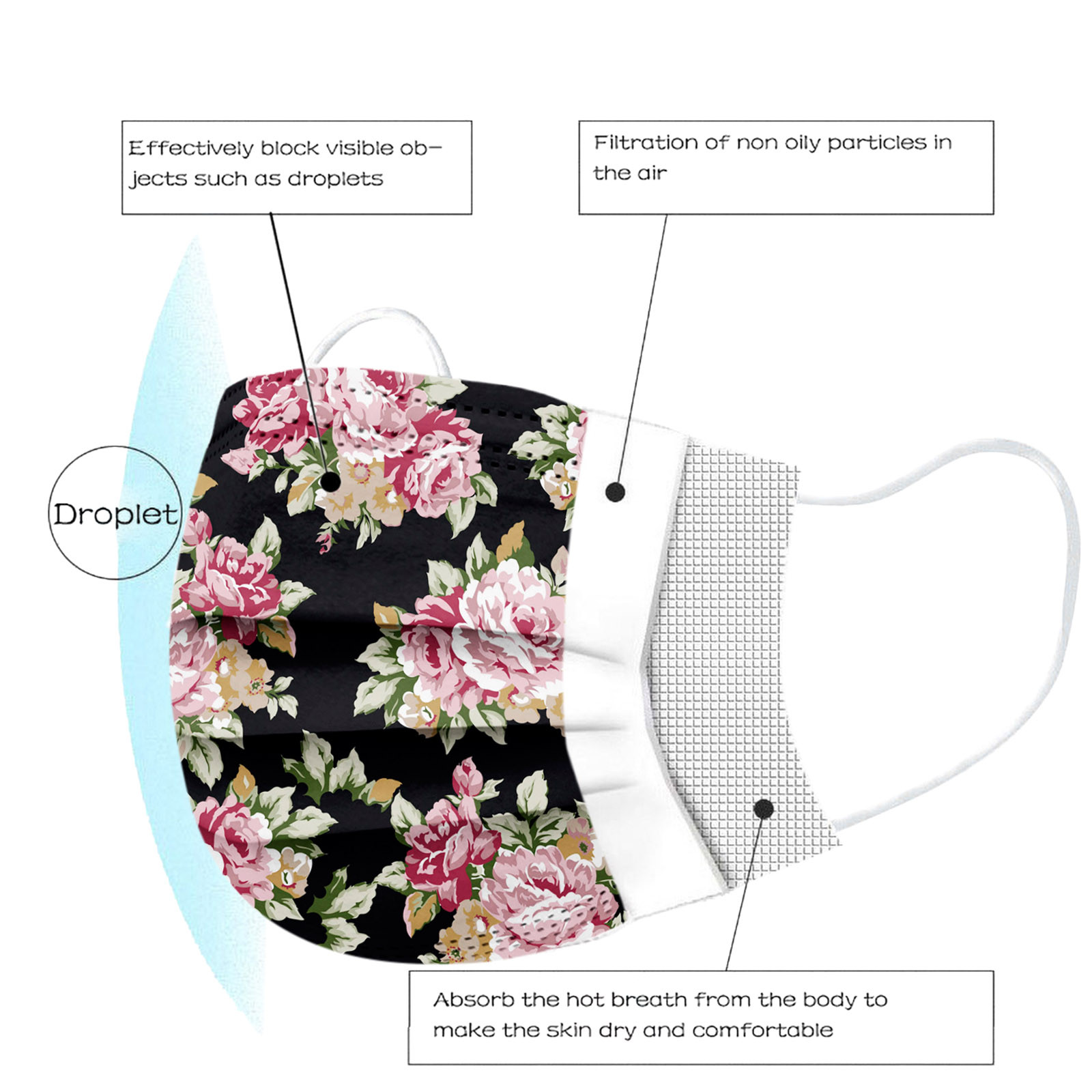 Идеально подходит Дизайн, когда вы носите его, он легко помещается в лицо. Эластичный Ушная петля легко носить и не давит на уши.