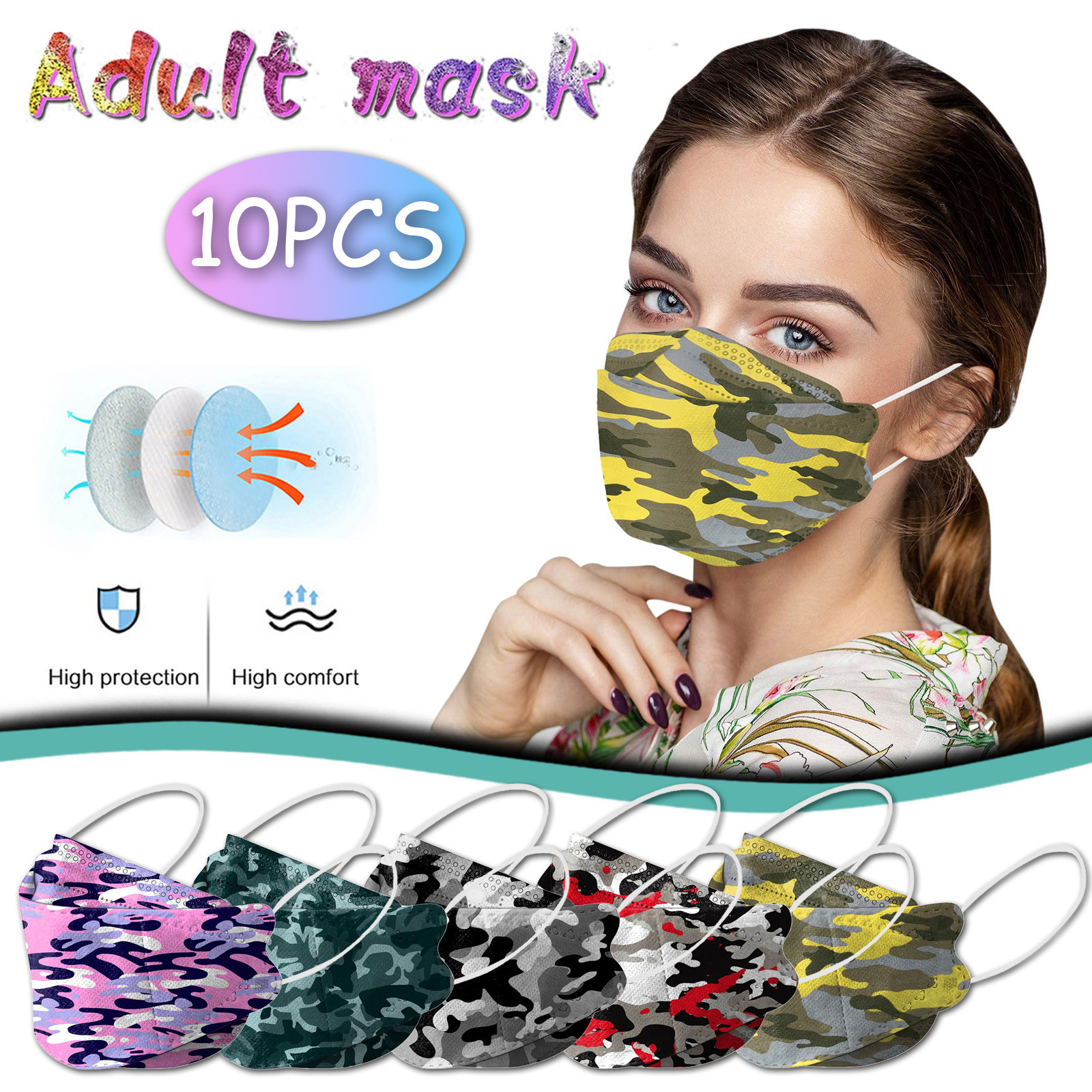10 шт унисекс для взрослых камуфляжная печать наружная Маска Защитная одноразовая маска для лица