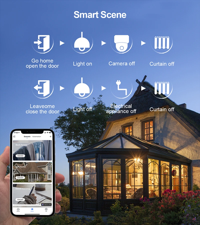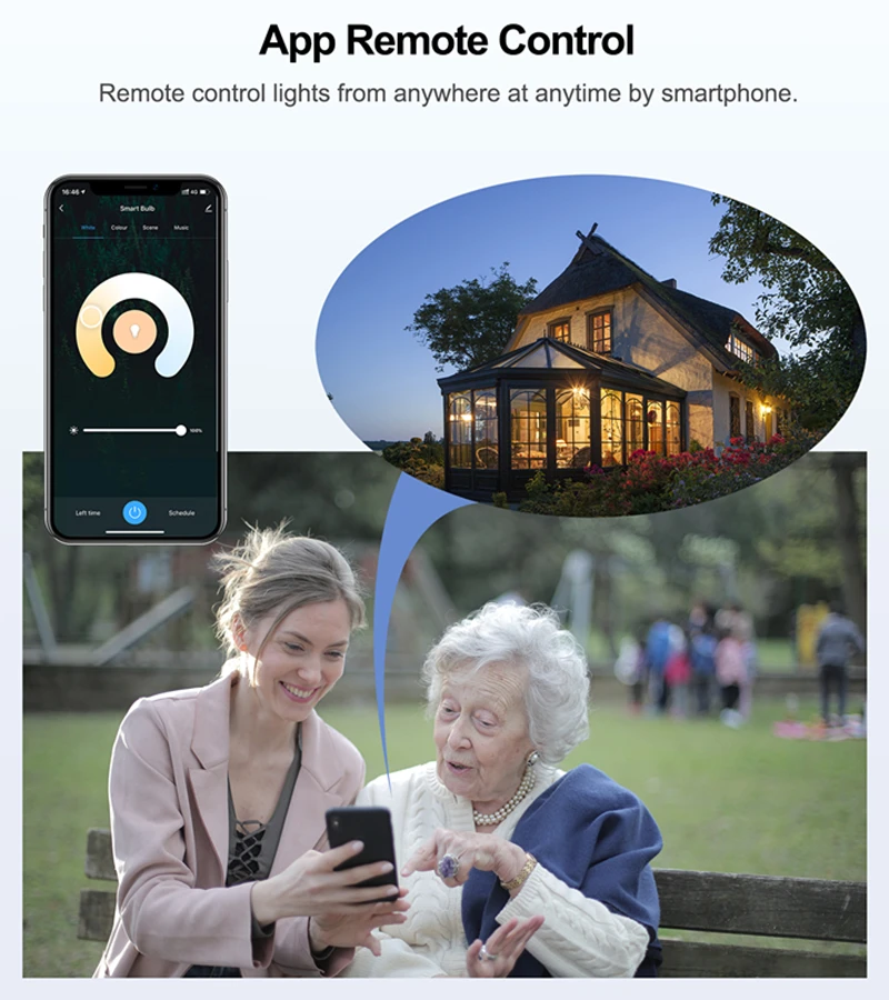 Без хоста вы можете напрямую подключиться к Wi-Fi, вы можете осуществить дистанционное управление приложением на мобильный телефон (SmartLife / Tuya), даже если вы находитесь в тысячах миль, вы также можете контролировать светильник дома. Вы можете выключить светильник по телефону во время сна.