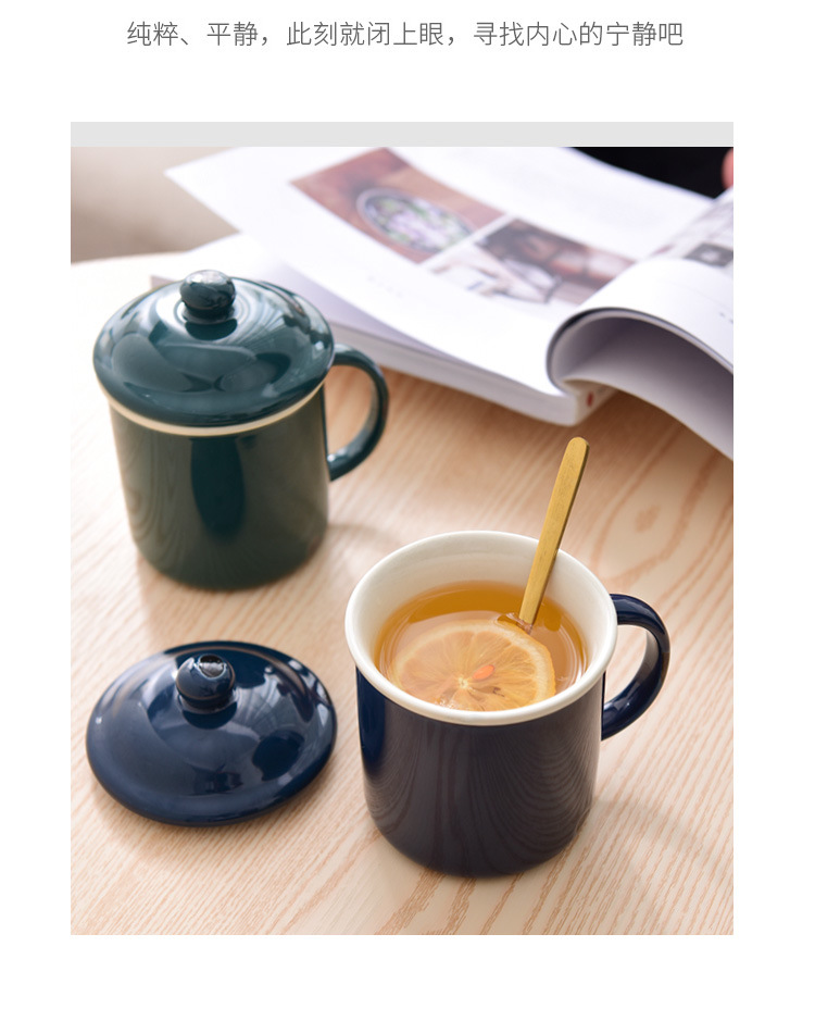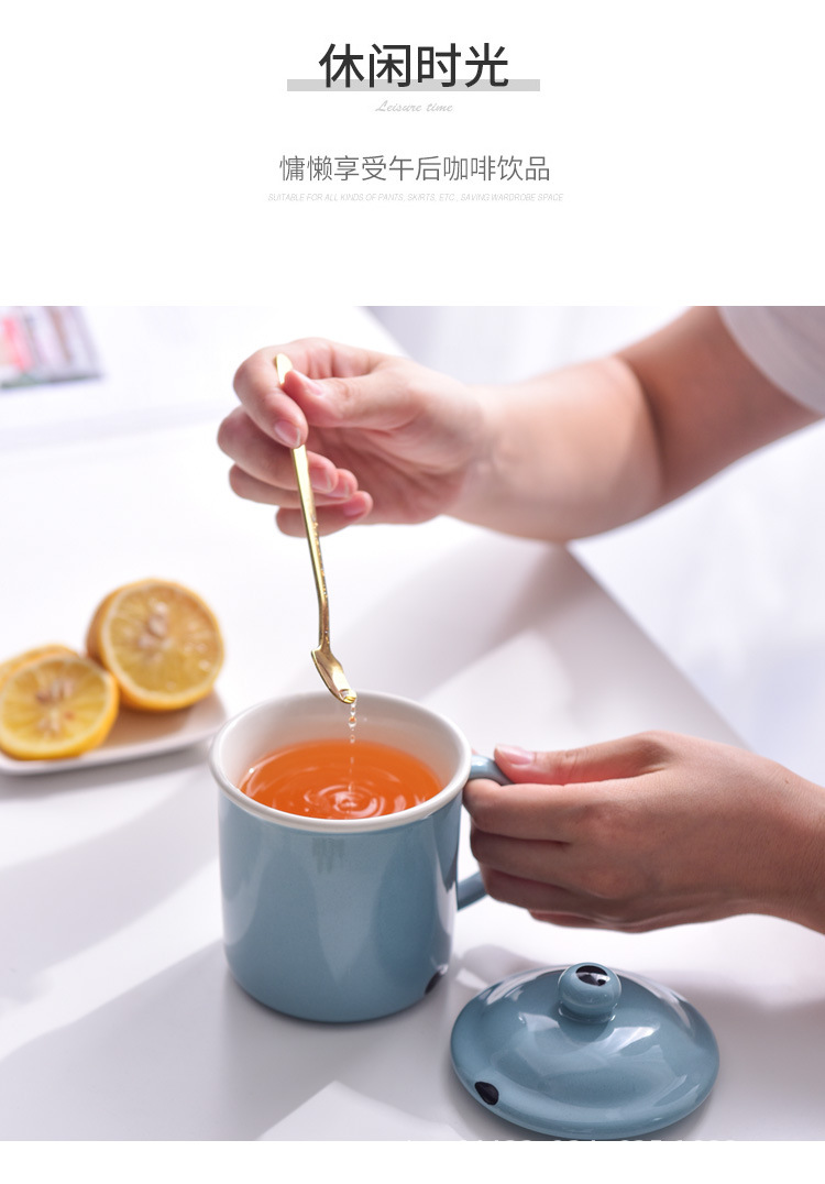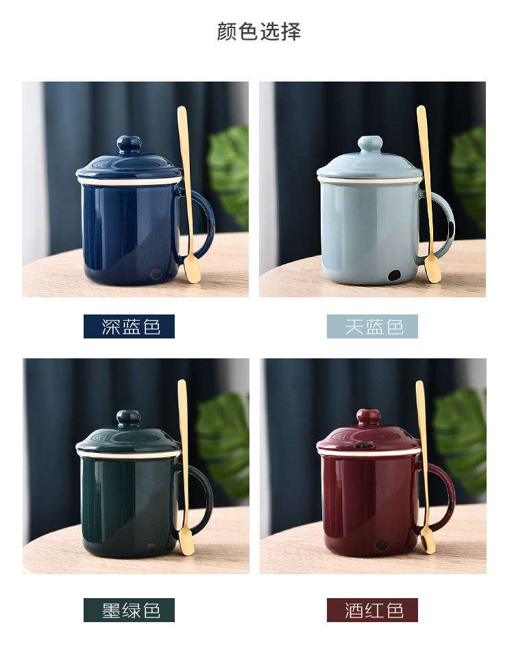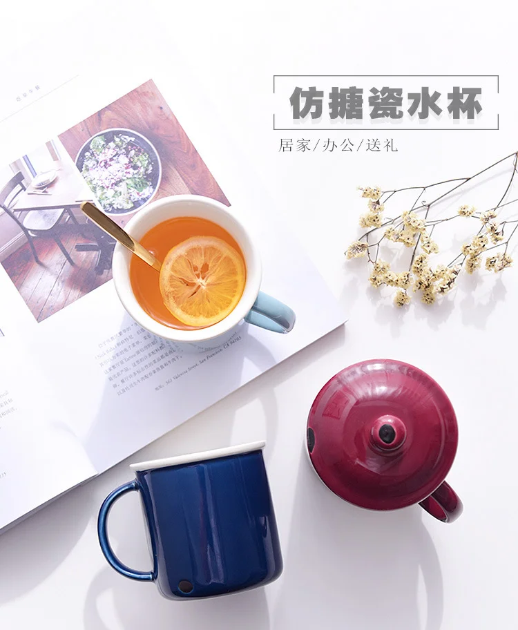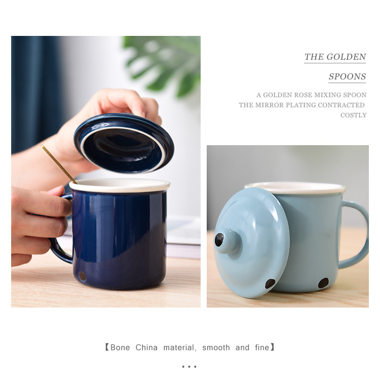 Имитация эмалированной кружки, домашняя Личная кружка, керамическая кружка с крышкой и ложкой, Офисная чайная чашка, рекламная акция, подарки для Конференции