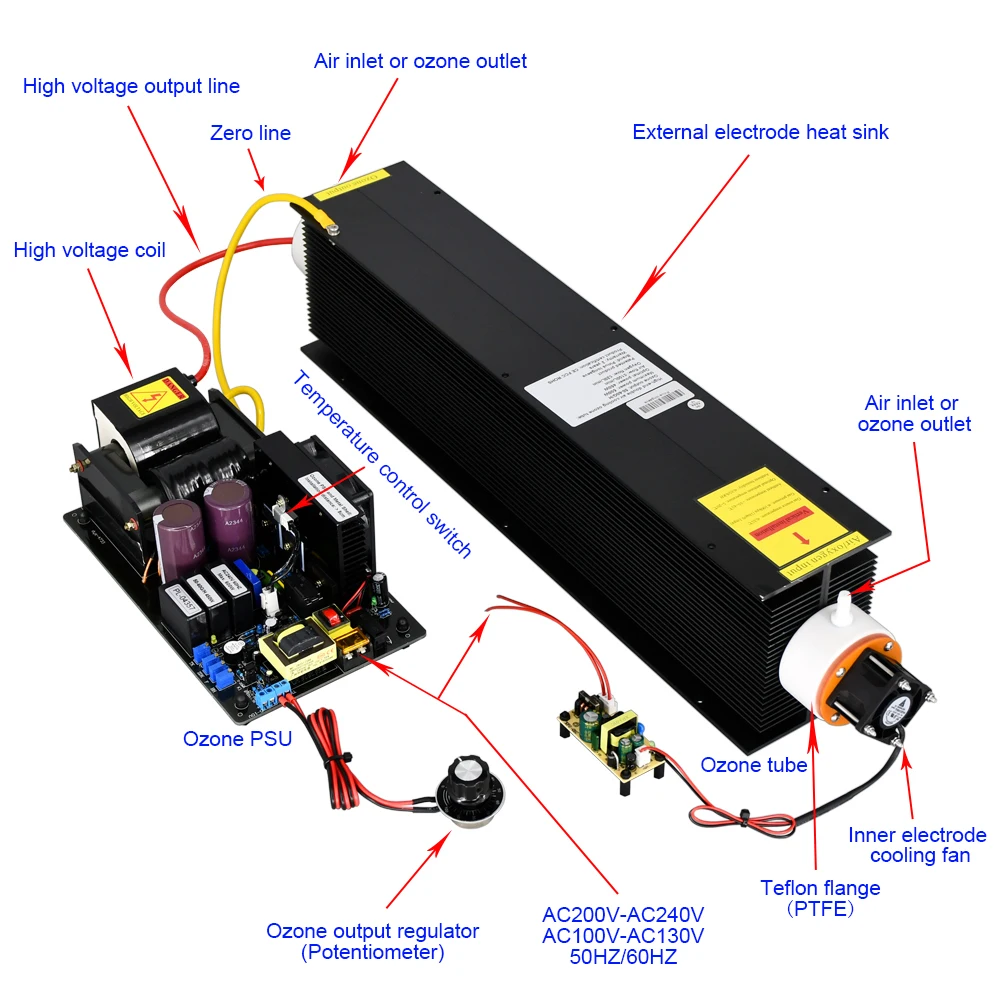 ..Информация о продукте:Название продукта: кварцевый генератор озонаСпособ охлаждения: воздушное охлаждениеИсточник газа: источник воздуха, источник кислородаДавление газа: <200 КПА (2 бар/0,2 МПа, если давление превышает 70 кПа, пожалуйста, сообщите нам)Среда: <40 градусов Цельсия, <85% относительной влажностиПовышение температуры: <5 градусов ЦельсияЭффект рассеивания тепла: рост 1,6 разКонцентрация озона: увеличение 10%-15%Внутренний электрод: трубка из нержавеющей стали 316LПрименение продукта: очистка воздуха и стерилизация водыСрок службы/Гарантия: более 20000 часов/2 годаПодгонянный: можно подгонять.Озоновая трубка: 5,5 кг 600*96*126 ммОзоновый блок: 1,95 кг 254*135*85 мм..Dehydroxylation Высокая чистота кварцевая трубка генератор озона комплект:#1: состав кварцевых труб:99.9% кремнезема, с сильной твердостью, высокой термостойкостью, низким коэффициентом теплового расширения (CTE), термостойкостью, хорошей химической стабильностью и электроизоляционными свойствами.#2: Высокая эффективность:Узкий зазор разряда 0,4 мм, с высокой озоновой коэффициент конверсии и низким уровнем шума.#3: Низкое энергопотребление:Высоковольтный высокочастотный коронный разряд, с коэффициентом энергопотребления 6 ~ 10 кВт. Ч/кг O3.#4: Высокое сопротивление напряжения:Рабочее напряжение трубки составляет всего 1/5 от его пробоя напряжения, с высокой диэлектрической постоянной.#5: Высокое качество:Диэлектрический материал изготовлен из высокочистого кварцевого кремнезема, спеченного при высокой температуре, с высокой точностью и равномерным разрядом. Он оснащен внутренним электродом из нержавеющей стали 316L, твердыми крепежами, насадками из ПТФЭ и антикоррозийными высокочистыми фтористовыми резиновыми кольцевыми уплотнениями. Новейшая технология рассеивания тепла из алюминиевого сплава подсолнуха применяется для наружного воздушного охлаждения рассеивания тепла, что обеспечивает более эффективное рассеивание тепла. И долгое время распада озона очень низкая, <1/10.#6: Срок службы:Больше чем 20000 часов.#7: озоновый Блок питания:Защита от перегрузки по току и перенапряжения, защита от короткого замыкания, защита от открытого замыкания.Если кварцевая стеклянная трубка повреждена, озоновый блок автоматически прекратит выход высокого напряжения...