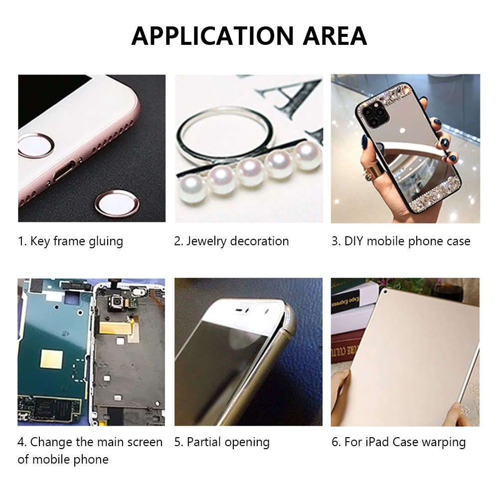 Многофункциональные клеи могут широко применяться для смартфонов, планшетов, электронных компонентов, ювелирных изделий, игрушек, металла, стекла, резины, волокна, бумаги, керамики, дерева, ткани, текстиля, нейлона, ПВХ, кожа и другие материалы удовлетворят ваши Многочисленные потребности.