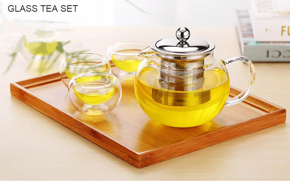 BORREY прозрачный заварочный чайник из боросиликатного стекла с фильтром для заварки, держатель для заварочного чайника, термостойкий заварочный чайник с отрывными листьями, набор чайных принадлежностей