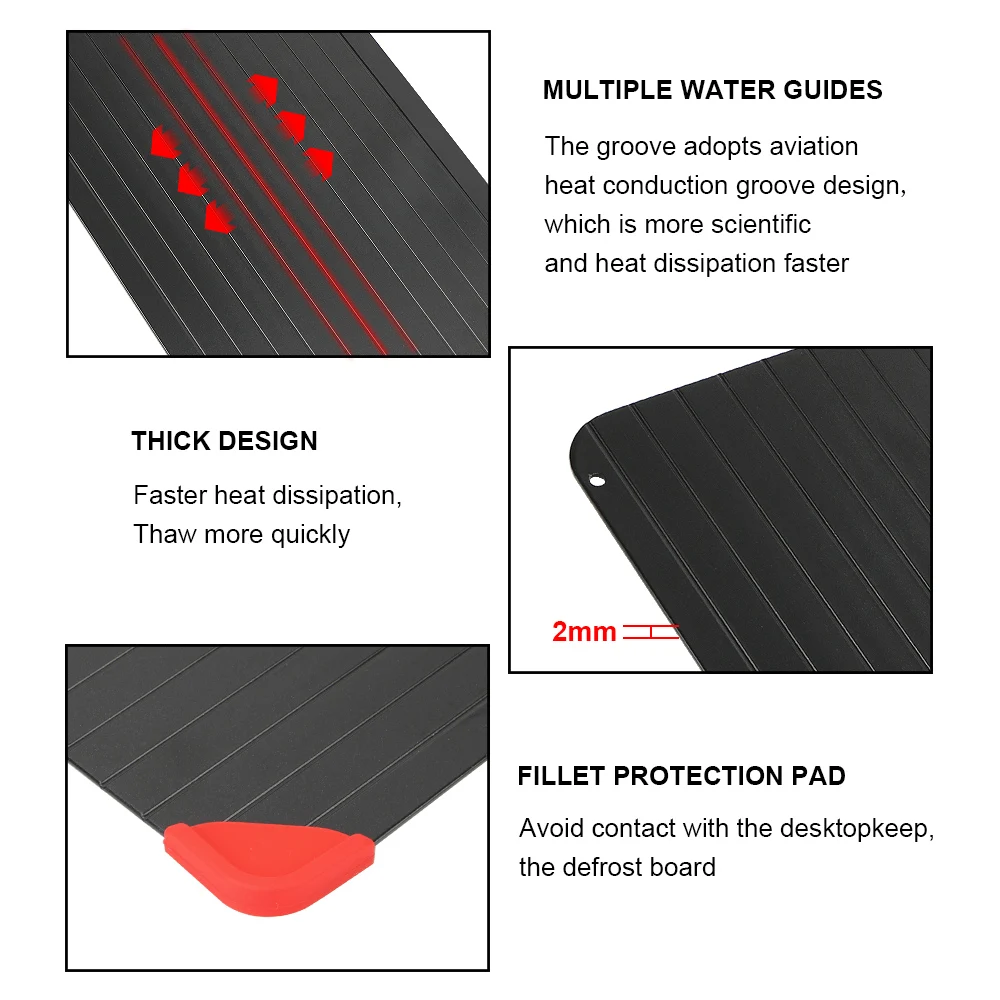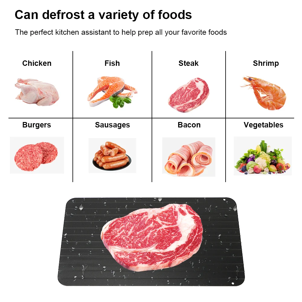 Волшебный лоток для разморозки остается прохладным на ощупь во время его использования, не требуется предварительного нагрева или горячей воды. Просто поместите замороженную еду на поднос, и она размораживается быстрее, чем при комнатной температуре