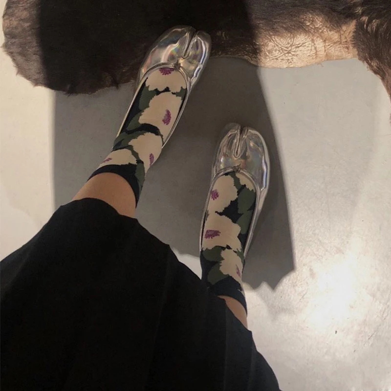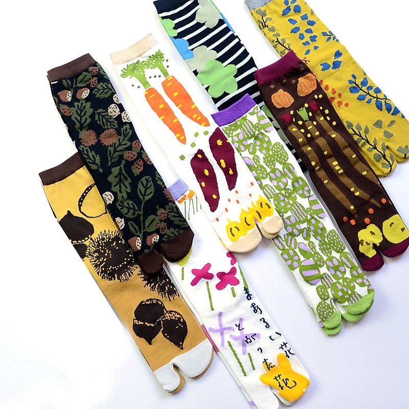 Носки с двумя пальцами, чулочно-носочные изделия, дышащие носки средней длины с принтом, носки до щиколотки, хлопковые Разноцветные носки