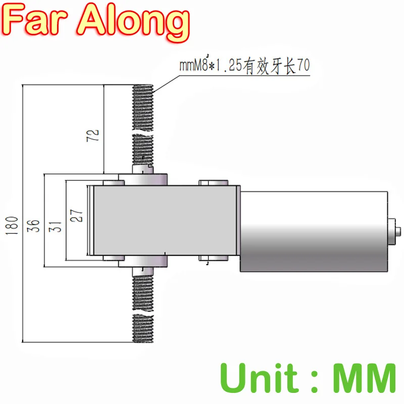 (1) Название двигателя: червячный мотор 5840-31ZY-M8 с двухниточным валом M8 (2) Номинальное напряжение имеет 12 В постоянного тока и 24 В постоянного тока (3) Вы можете выбрать Скорость без нагрузки: 12 об/мин/16 об/мин/27 об/мин/40 об/мин/80 об/мин/160 об/260 об/мин/470 об/мин Выберите одну из скоростей, будет соответствующий Номинальный крутящий момент и крутящий момент, пожалуйста, обратитесь к таблице параметров ниже. Рекомендуется, чтобы нагрузка вашего проекта не превышала Номинальный крутящий момент; (4) вал двигателя является резьбовым валом. Резьбовой вал имеет различие между ортодонтическим и обратным зубами. Резьбовые зубья двух валов этого двигателя отличаются. Одна сторона Резьбовая Ортодонтическая и другая сторона Резьбовая обратная. Поэтому, когда двигатель работает, вы можете наблюдать, что фланец движется в противоположном направлении Когда положительный полюс двигателя подключен к положительному полюсу источника питания, и отрицательный полюс двигателя подключен к отрицательному полюсу источника питания, фланец расширяется в противоположном направлении. Когда положительный полюс двигателя подключен к отрицательному полюсу источника питания, и отрицательный полюс двигателя подключен к положительному полюсу источника питания, фланец убирается в противоположном направлении. Это важная функция продукта. Если вы хотите, чтобы два фланца двигались в одном направлении, вы можете связаться с нами, у нас также есть такой двигатель. (5) скорость двигателя может регулироваться с помощью регулятора скорости. Если вам нужно контролировать скорость и направление вращения двигателя, вы можете выбрать посылка D для покупки заказа. Однако, если вы используете регулятор скорости для управления скоростью двигателя, крутящий момент двигателя будет Значительно уменьшен по мере уменьшения скорости. Если крутящий момент ниже, чем нагрузка вашего проекта, двигатель будет поврежден, поэтому вам нужно обратить особое внимание на этот момент. Вы можете связаться с нами о принципе изменения крутящего момента со скоростью, мы можем помочь вам избежать ошибок при покупке, спасибо! (6) Мотор имеет функцию самоблокировки; После отключения источника питания, вал может быть надежно заблокирован, не может легко перемещаться с помощью другой силы. Когда ваш проект не подключен к источнику питания, вы можете сделать свой проект безопасным где-то. Он используется для некоторых специальных целей, таких как Противокражные раздвижные двери. (7) Форма вала двигателя: m8резьбовой вал, двойной вал; Пожалуйста, обратитесь к таблице размеров ниже для всех размеров двигателя. (8) материал зубчатой передачи: металлическая Шестерня s делает двигатель более длительным (9) двигатель имеет стандартный шум при работе. Если у вашего проекта есть требования к рабочему шуму двигателя, пожалуйста, проконсультируйтесь с нами перед покупкой. Мы дадим вам несколько предложений. Спасибо. Когда двигатель перевернут, рабочий звук двигателя будет больше, чем вращение вперед, что является нормальным. (10) поскольку вал двигателя очень длинный, вал слегка встряхнет при вращении. Если вы выберете более высокую скорость, амплитуда встряхивания будет больше. Если вы выберете низкую скорость, вал двигателя будет слегка встряхивать. Если вы хотите небольшой тряски, пожалуйста, выберите