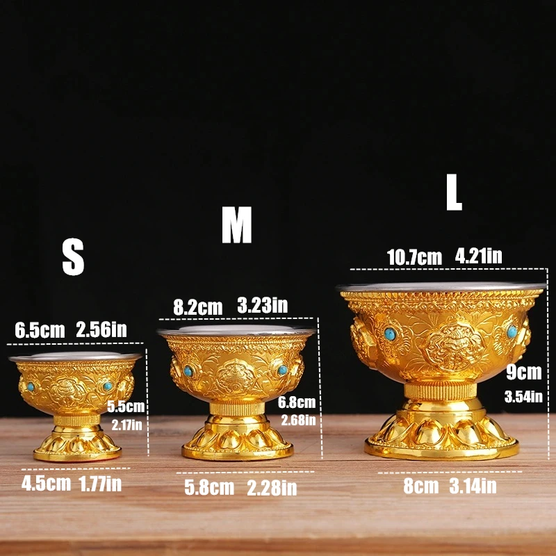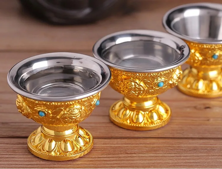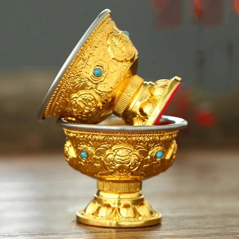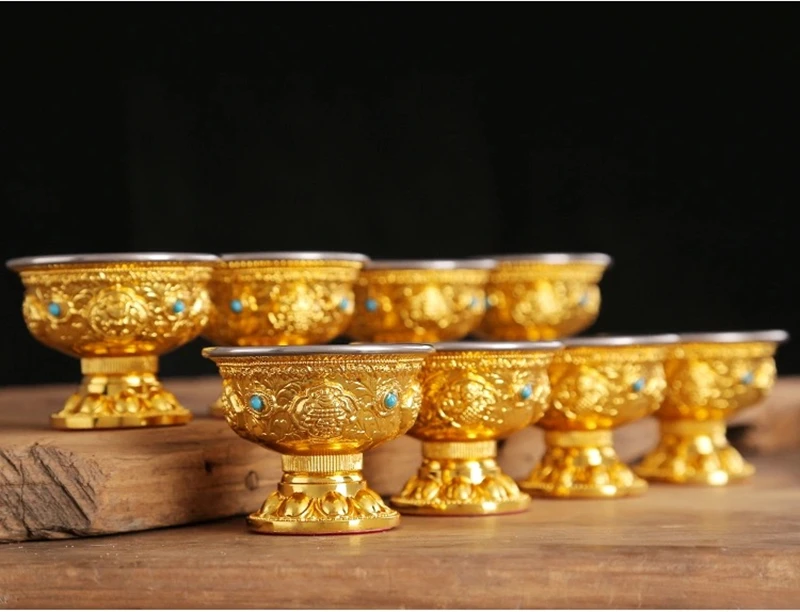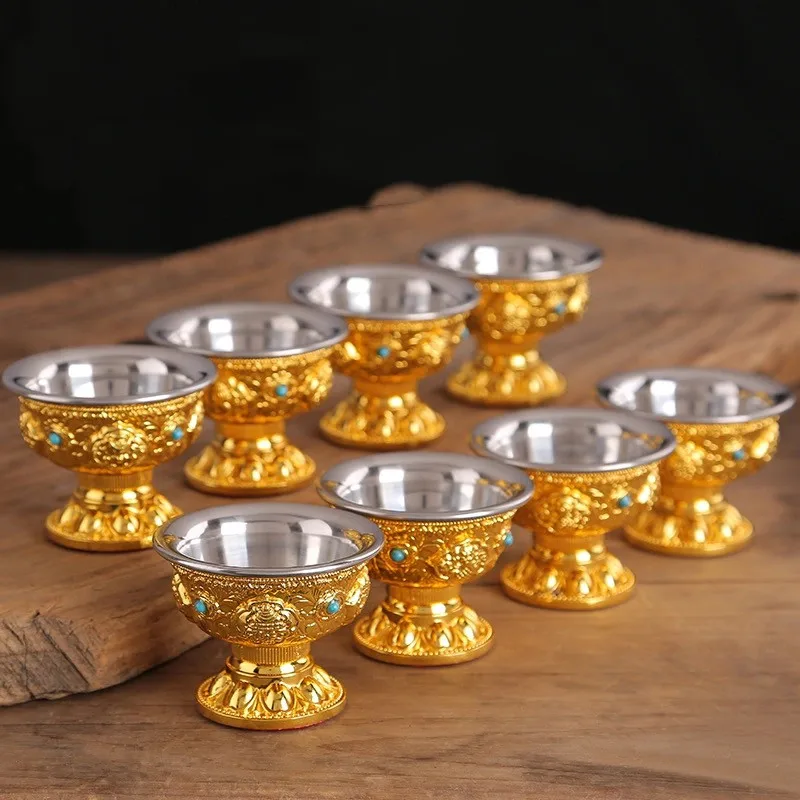 Поилка из чистой меди с драгоценной мозаикой, медная чашка для святой воды в тибетском стиле, Золотая буддийская чаша для чая, декоративный подарок для дома