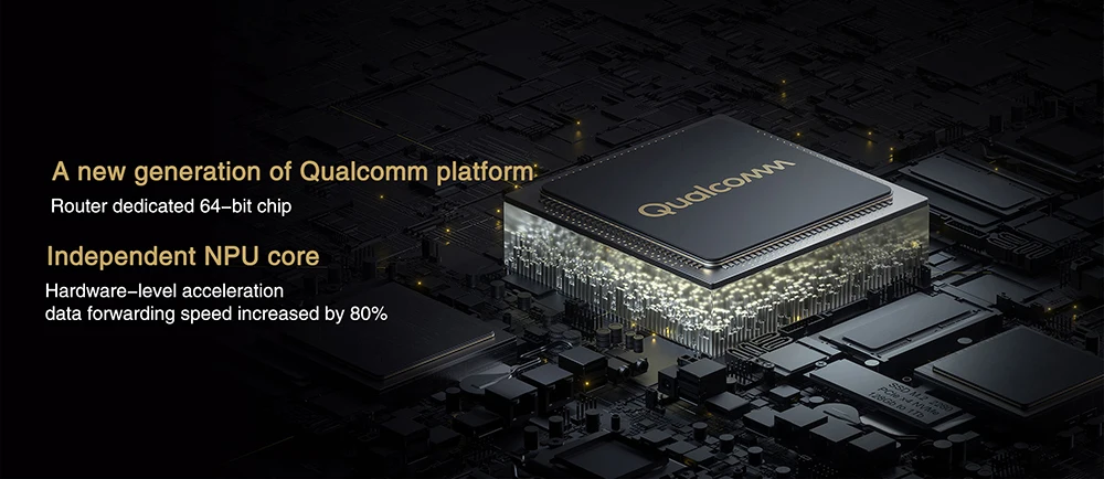 Используя чипы маршрутизатора Qualcomm нового поколения, добавлен ядро NPU (механизм ускорения сети), что особенно важно для роутеров. Ядро ЦП используется для обработки сложных расчетов, а NPU концентрируется на пересылке данных. Такое сочетание может решить проблему перегрузки данных и потери пакетов при подключении нескольких устройств и уменьшить задержку игры в сети.