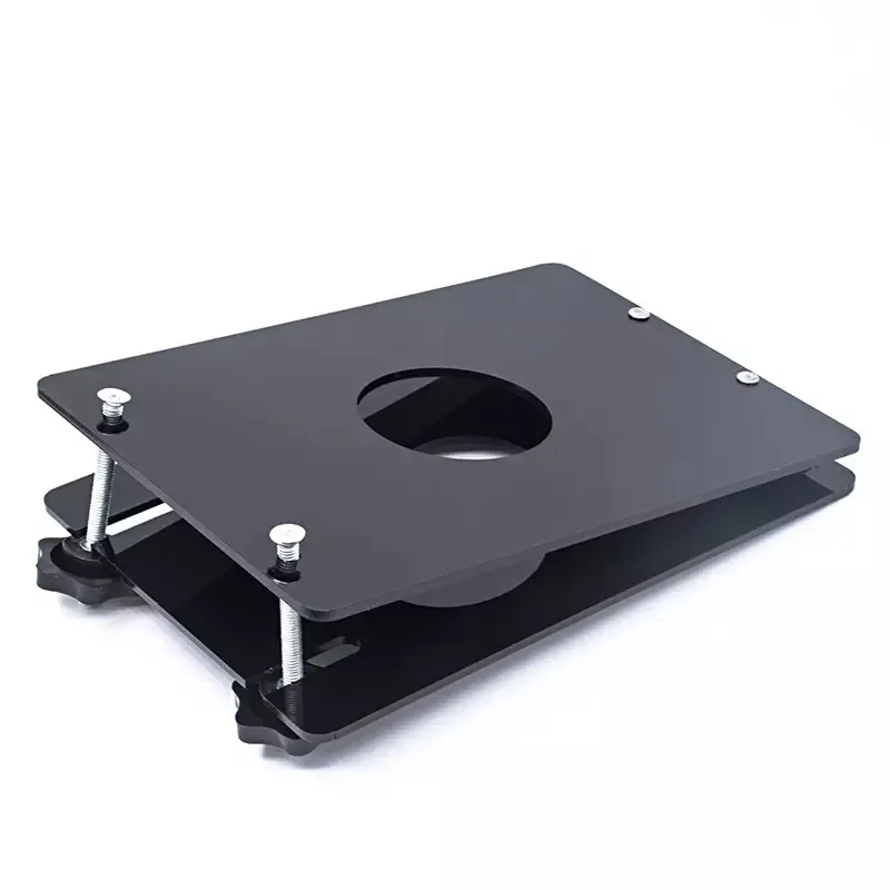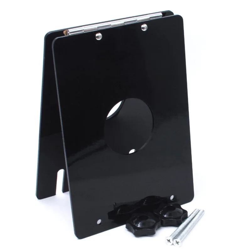 Две Акриловые пластины соединены в верхней части с шарниром и разделены двумя винтами в нижней части устройства. Задняя пластина имеет отверстие для протирания петуха и шариков. Крылышки используются на винтах, чтобы сблизить пластины. Вы можете затянуть дробилку весь путь, что делает открытое пространство всего 1 ”широким. Или вы можете сделать пространство почти 1 и frac34;» в ширину (длина винтов) для более легкого дробления.