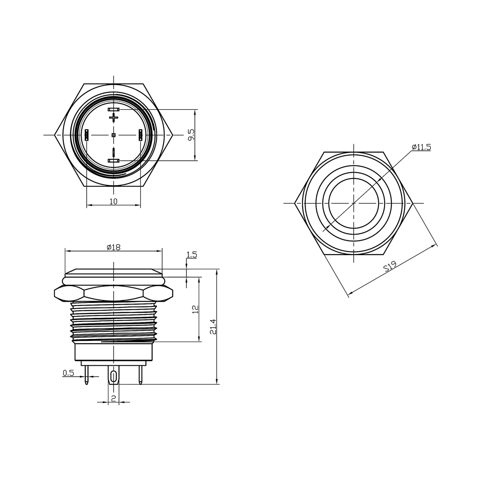 1. Монтажное отверстие: 16 мм