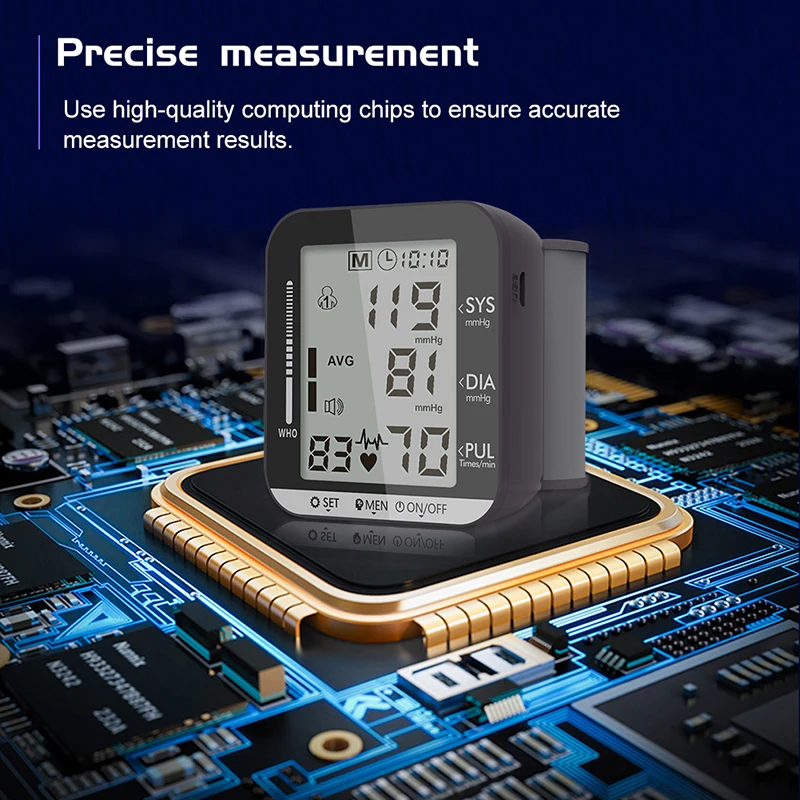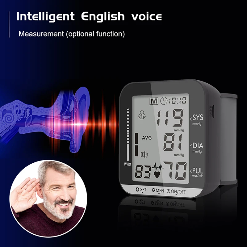 Особенности и преимущества 1. Цветовая Спецификация: черный, без голосовой/английской функции голосовой трансляции является необязательной, модель зарядки может быть настроена 2. Метод измерения: Электронный Сфигмоманометр для запястья, пошаговое измерение/осциллометрический метод 3. Экран дисплея: цифровой ЖК-дисплей, результат показывает высокое давление/низкое давление/пульс, и сопровождается светильник С трехцветным индикатором, чтобы напомнить о состоянии кровяного давления, большой экран с большими символами, И четкие показания. 4. Классификация артериального давления: классификация сфигмоманометра ВОЗ указывает на здоровье кровяного давления, что удобно для пользователей, чтобы точно определить, является ли артериальное давление нормальным 5. Интеллектуальное давление: Автоматическое давление и декомпрессия, обнаружение аритмии IHB 6. Функция часов: год, месяц, день, час, минутная Настройка 7. Хранение данных: 99 наборов результатов измерений памяти для двух человек, может отображать среднее чтение последних 3 результатов измерений, удобно для пользователей, чтобы получить данные для сравнения 8. Автоматическое выключение: ручное выключение или автоматическое выключение после 1 минуты без работы, простая и удобная работа 9. Преобразование единиц измерения: единица измерения артериального давления кПа и два единицы измерения рт. Ст. 10 Функция защиты от избыточного давления: автоматически и быстро выхлопывается, когда давление воздуха превышает 295 мм рт. Ст.-20 мс Функция вызова об ошибке 11: удобно для пользователей, чтобы найти причину ошибки 12 функция обнаружения низкой мощности: обнаружение низкой мощности при любом рабочем состоянии, ЖК-дисплей предлагает низкую мощность 13. Преимущества: измерение одним ключом, мониторинг сердечного ритма, удобные манжеты, большой экран и Большие символы, интеллектуальное давление, точное измерение, маленький и изысканный, легко носить с собой.