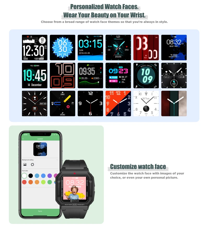 Широкий спектр стандартных персонализированных циферблатов удовлетворяют разнообразные потребности пользователей в ношении. Вы также можете настроить циферблат часов с изображением вашего выбора.
