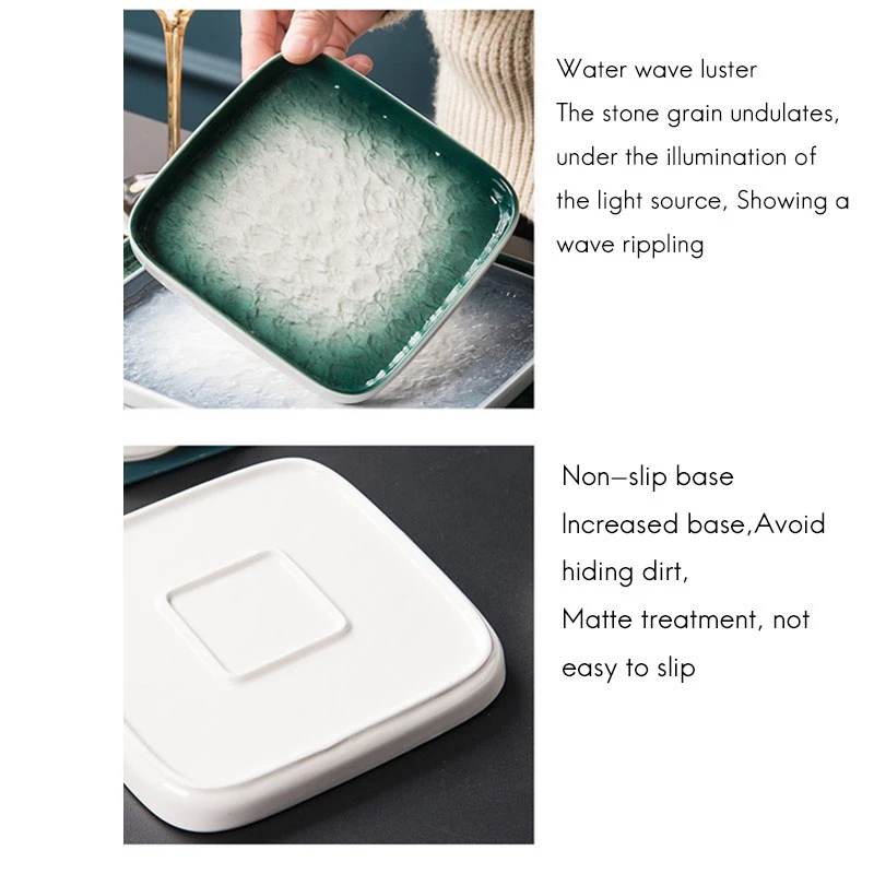 Привлекательный для глаз: новый и уникальный дизайн с градиентной текстурой камня, нежный и гладкий на ощупь. Уникальная квадратная форма хорошо сочетается с любой едой, добавляя элегантный пресс к вашему столу.