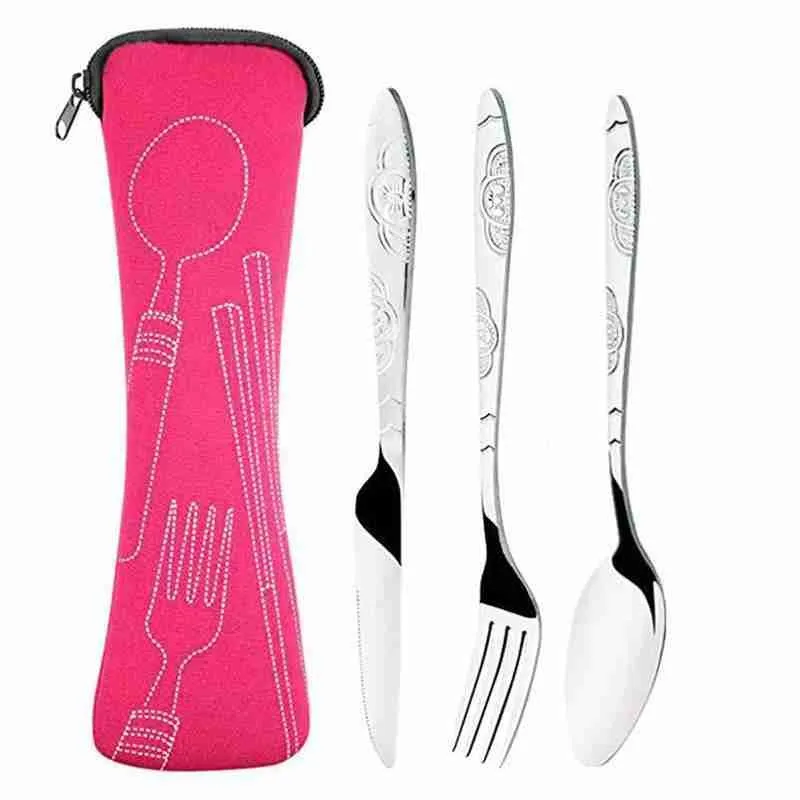 4 шт. ножи из нержавеющей стали вилка ложка семья путешествия Кемпинг столовые приборы окуляр набор столовых приборов из нержавеющей стали с сумкой