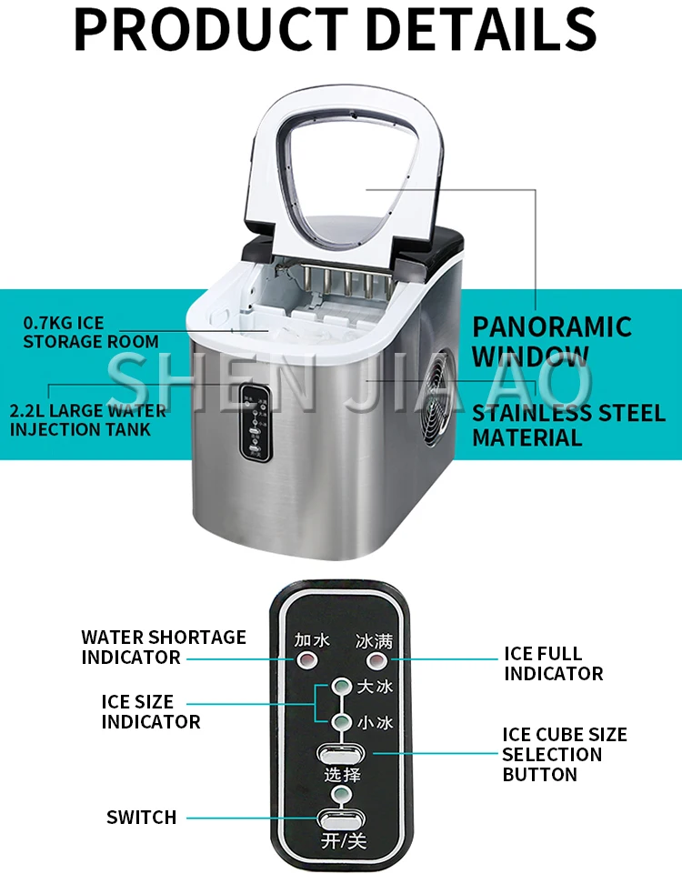 Модель машины: HZB-12SA Напряжение/частота: 220- 240 В/50 Гц Размер кубика льда: 26*32 мм Количество одного льда: 9 Максимальная выработка льда за 24 часа: 15 кг Способ подачи воды: добавить воду вручную Форма льда: Круглый лед Мощность: 95 Вт Время одного льда: 6 ~ 13 минут Емкость для хранения льда: 0,7 кг/70 шт. Вес нетто машины: 7,8 кг Размер машинки: 242*358*328 мм