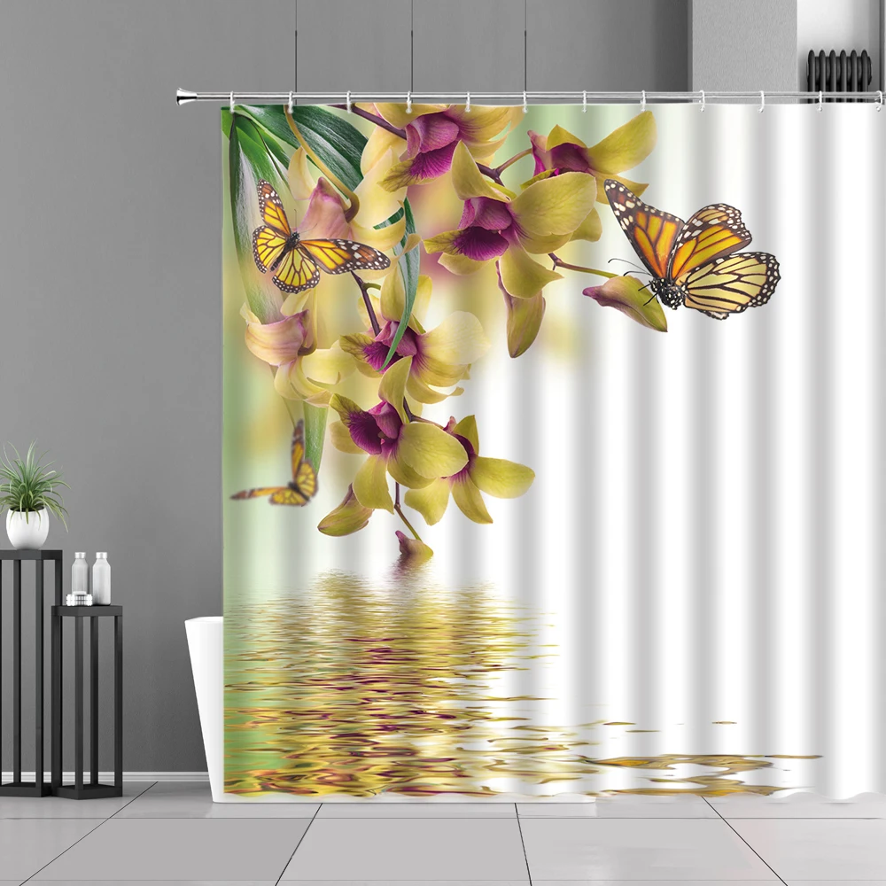 Zen занавеска для душа s камень зеленый бамбук Белый лебедь цветок растение бабочка пейзаж Водонепроницаемая занавеска для ванной занавеска водонепроницаемая ткань для домашнего декора