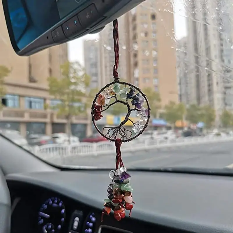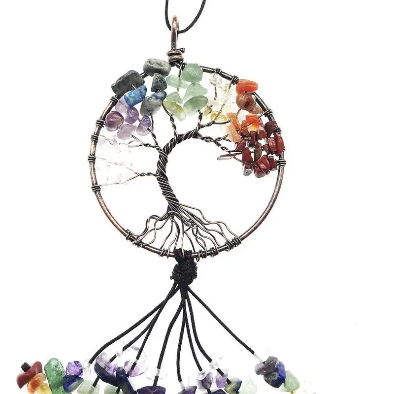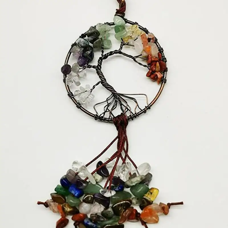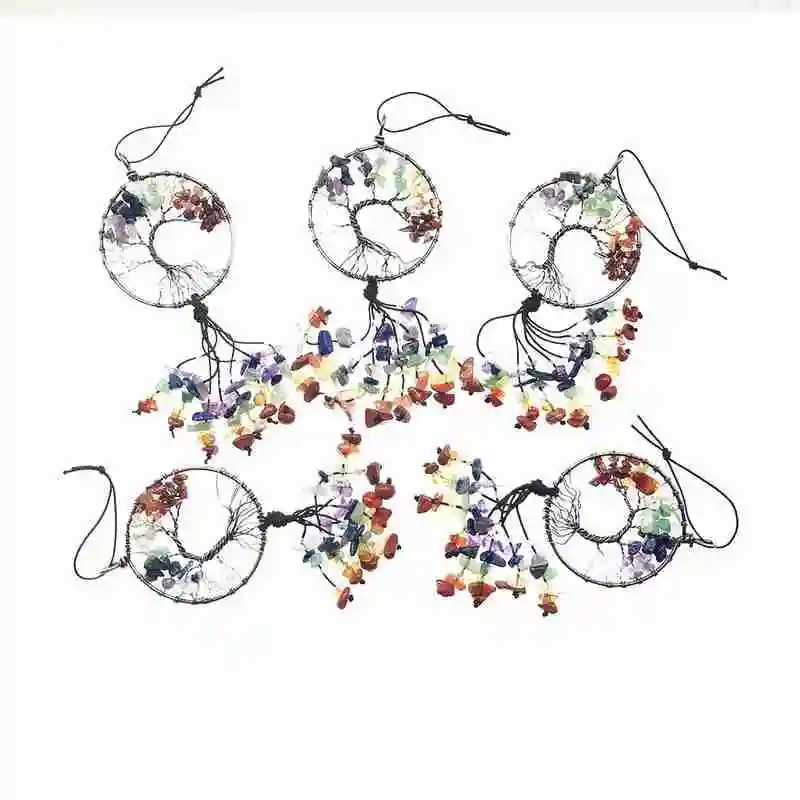 Натуральный драгоценный камень Дерево жизни 7 Чакра исцеляющий кристалл очарование, 21 дюйм в длину