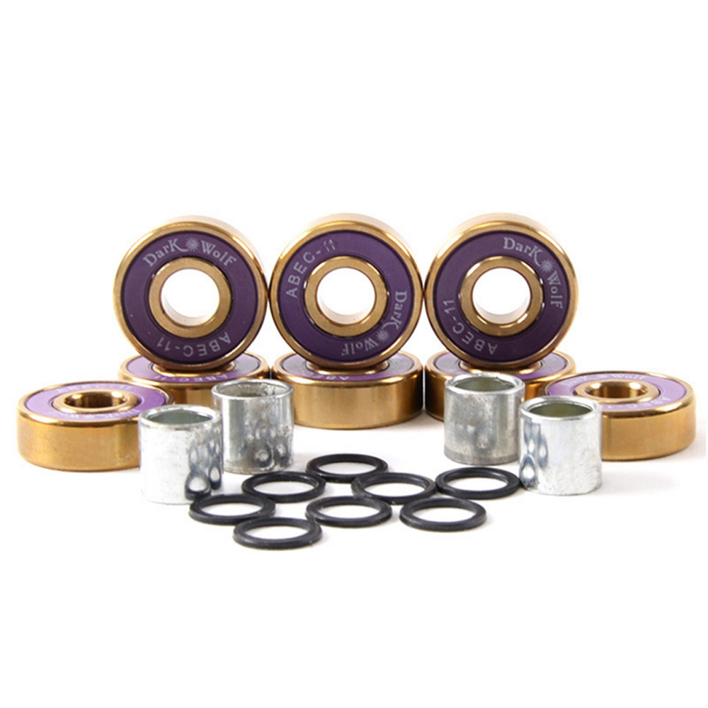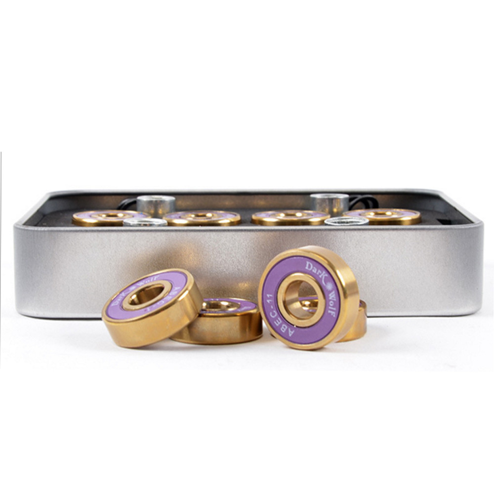 Набор из Подшипники для скейтборда Dark Wolf из титана ABEC 11 фиолетового золота 8 шт с 4 шт Прокладки