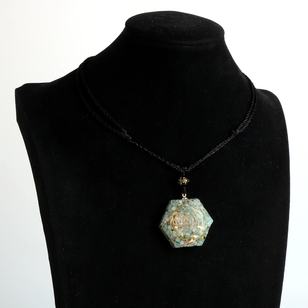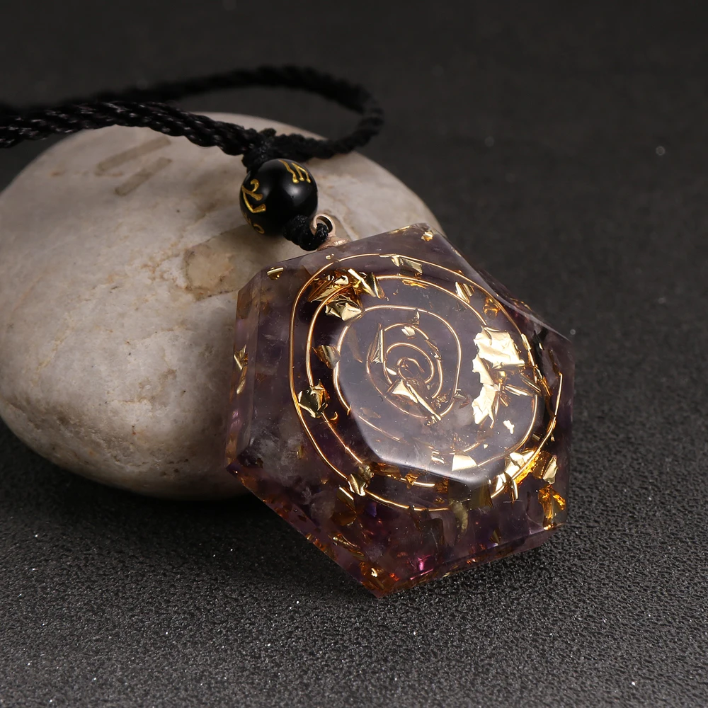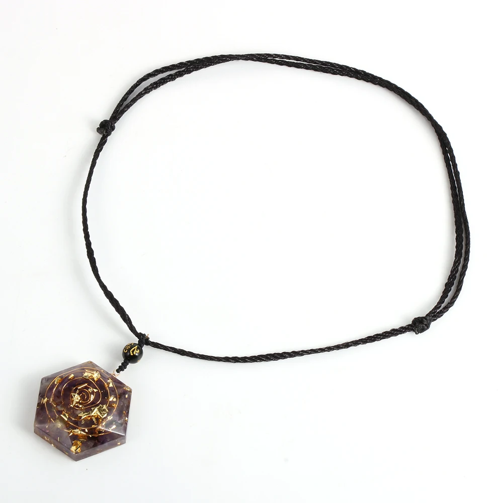 Товар: Кристалл Камень аметисты гранат Амазонит смолы кулон Oronge ожерелье Исцеление Рейки шестиугольник оргонит ремесла EMF защита ювелирных изделий
