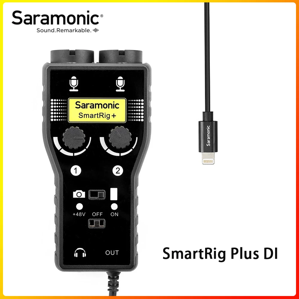 ВSaramonic SmartRig +-Компактный мультидатчик 2 канальный аудио-интерфейс, который позволяет подключаться к любым сочетанием микрофоны специалистов, гитар или инструментов для однообъективных цифровых зеркальных фотокамер и записывающих видеокамер, так же, как iPhone, IPAD, iPod Touch и устройства Android с разъемом для наушников. Это ультра-портативное, легкое устройство, которое значительно улучшает качество звука видео, которое вы снимаете. Он также позволяет создавать аудио записи качества трансляции на вашем мобильном устройстве для подкачки и сбора новостей. Кроме того, вы можете использовать мощные приложения для создания музыки в полном объеме, подключая настоящие инструменты и профессиональные микрофоны к мобильному устройству.