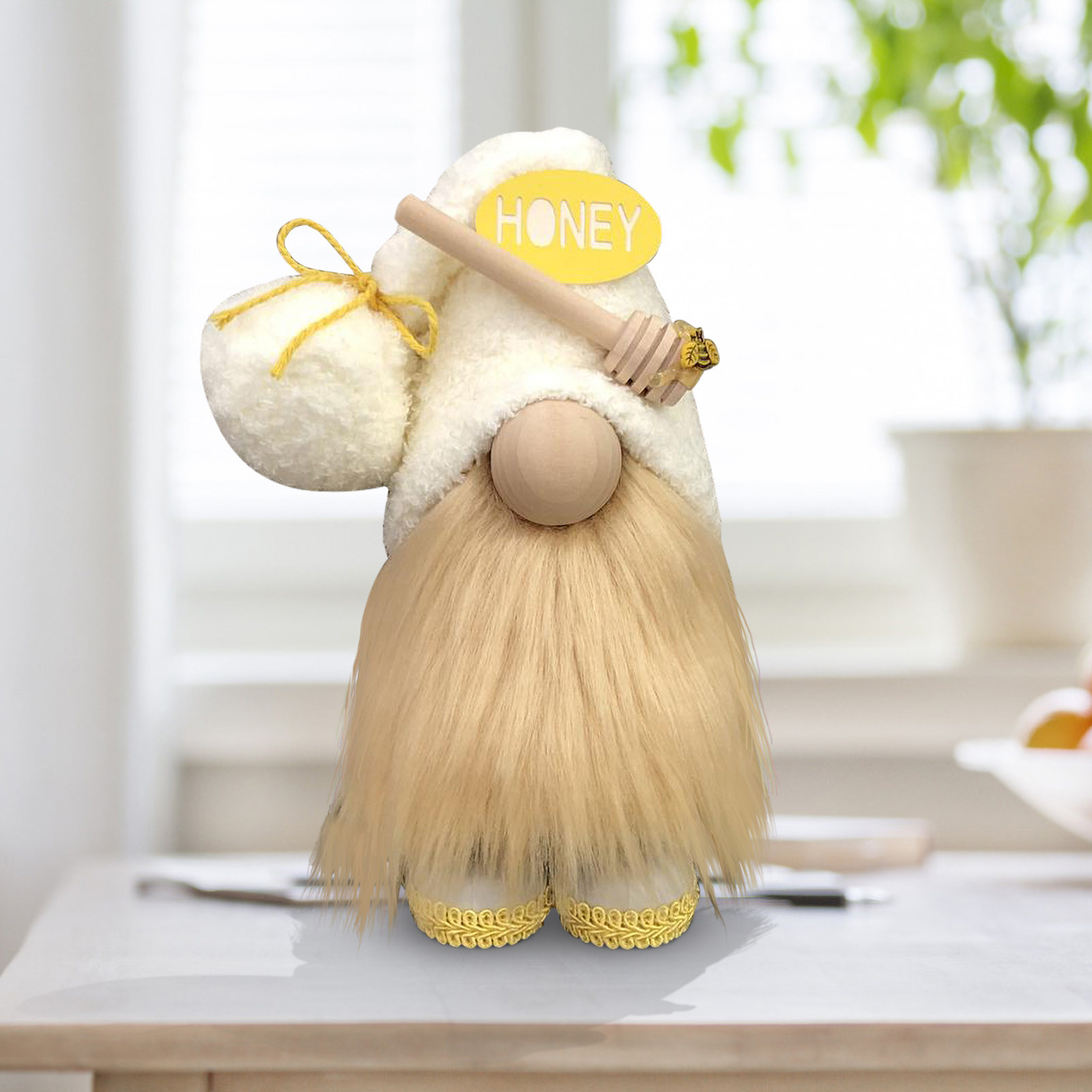 Handmade By Quality Material: Yellow & White hats are made of soft plush, their felt bodies, wooden bead noses, faux beards, and the adorned big feet are sure to brighten your spring and summertime kitchen.