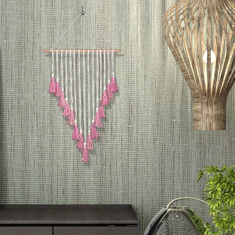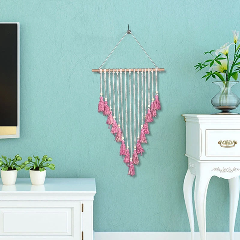 Bohemian Pink Fringed Tapestry Wall Decoration Nordic Craft Jewelry Home Decoration Wedding Wall Hanging for Girls Room Living R
