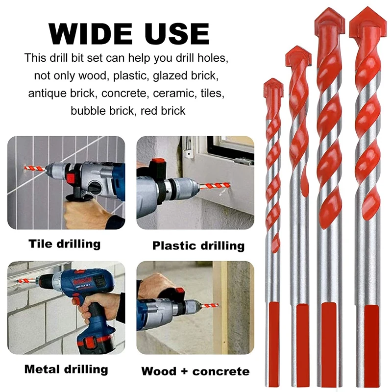 [Широко используется] набор сверл для каменной кладки широко используется. Острый наконечник из твердосплавного сплава может легко проникать в плитку, бетон, кирпичную стену, стекло, зеркала, пластиковую кладку, дерево и уменьшить прорыв.