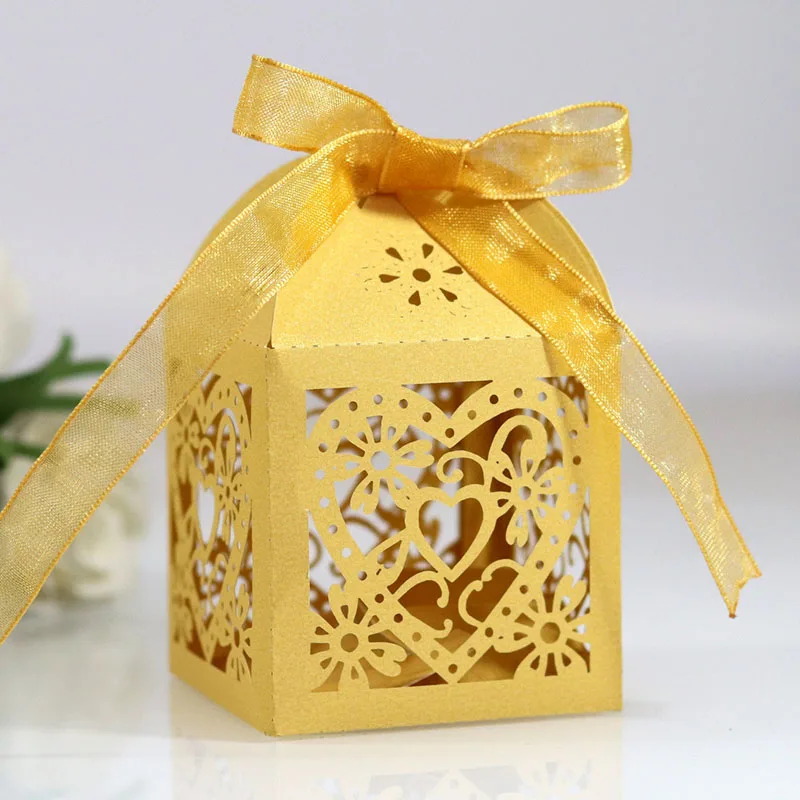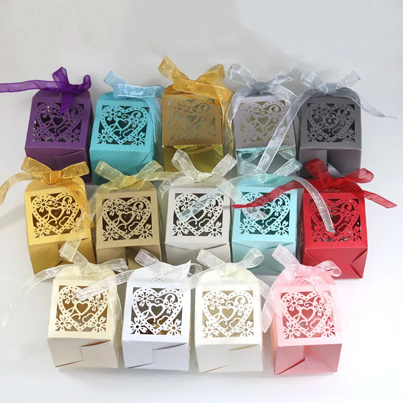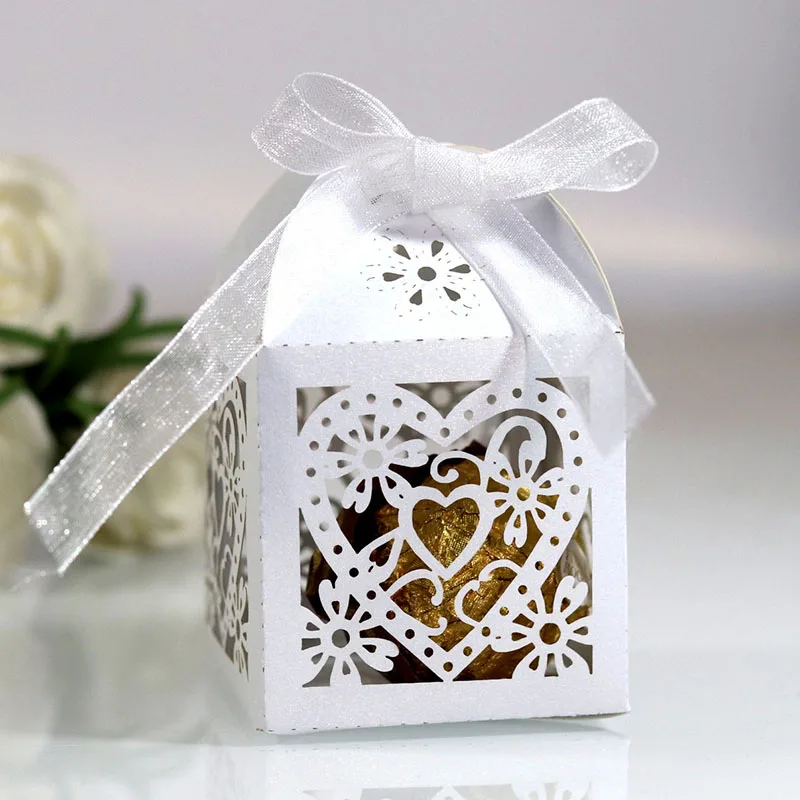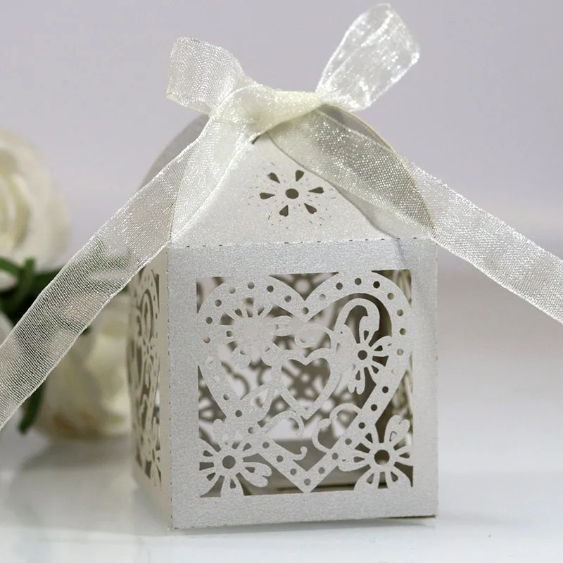 10 шт. цветок любовник Герат лазерная резка сувениры Подарочная коробка полый коробка для конфет с лентой детский душ помолвка Свадебная вечеринка Декор