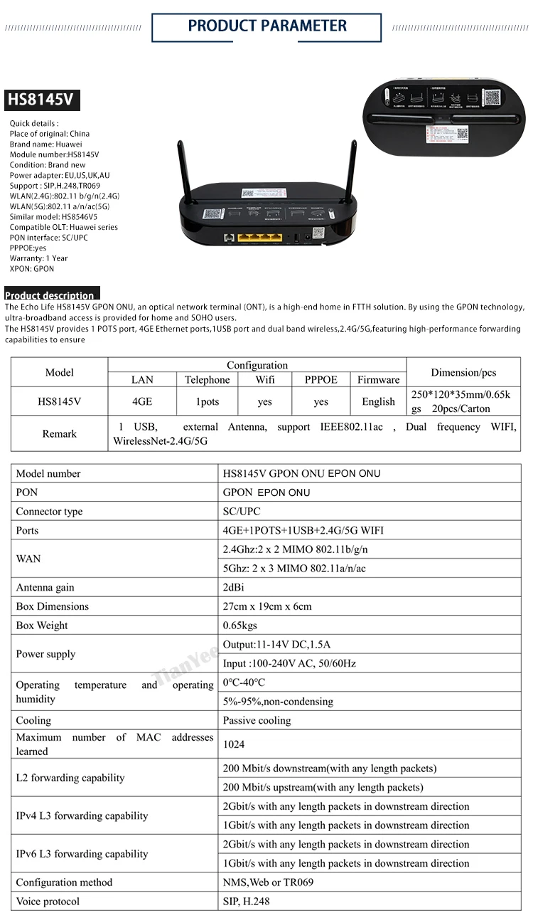 HS8145V 4-порт Gigabit EPON беспроводной 5G-2,4G Автоматическая отправка