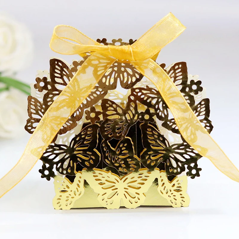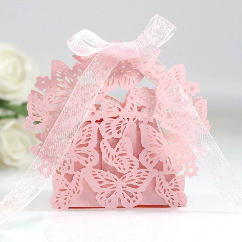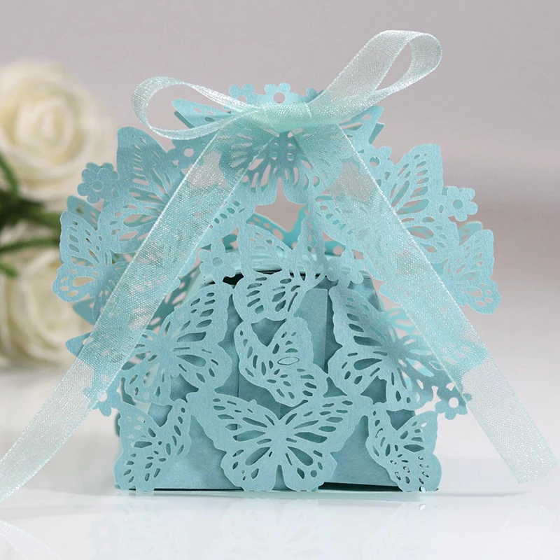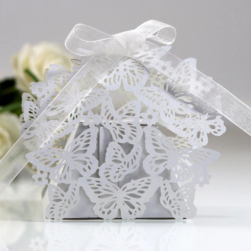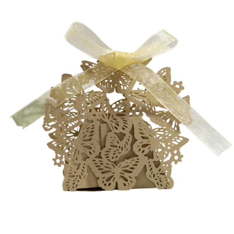 10 шт. бабочка Лазерная резка свадебные сувениры Подарочная коробка полый коробка для конфет с лентой детский душ Сделай Сам помолвка Свадебная вечеринка Декор