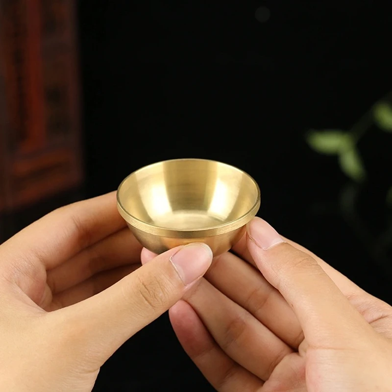 Поилка из чистой латуни и меди, маленькая благоприятная тибетская чайная мини-чашка для воды, Золотая буддийская чайная чаша, домашний подарок, декоративная
