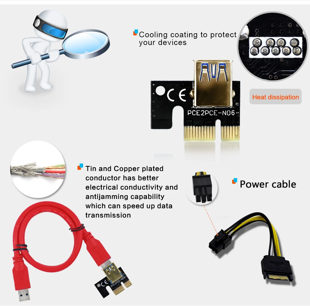 10 шт. TISHRIC PCI-E Райзер 009s карта PCIE PCI E удлинитель USB 3,0 на 6pin Кабель-адаптер Майнинг Райзер для видеокарты отправка в течение 24 часов