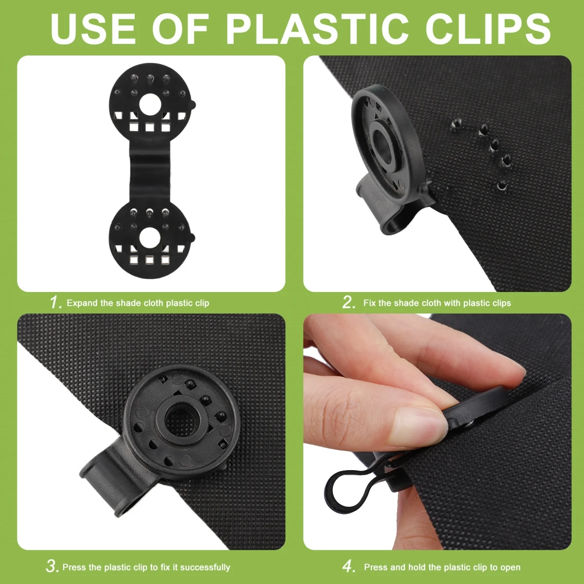 Тканевые зажимы для теней-это идеальный экологически чистый способ обеспечить застежку для плотной теневой ткани, экрана, брезента и любого другого типа трикотажных тканей.