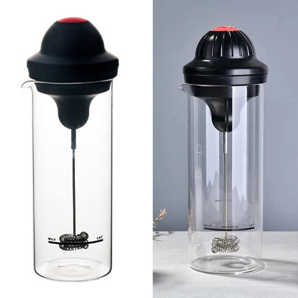 A big capacity jug 400ml heat-resistant borosilicate glass milk frother cup with maximum fill line.And microwave-safe for warm frothing milk