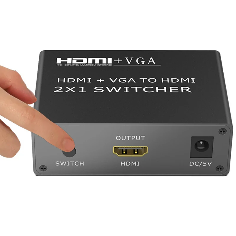 Преобразователь из VGA в HDMI с аудио 1080P видео выходом, HDMI VGA в HDMI 2 в 1 коммутатор, мужские и женские Позолоченные разъемы