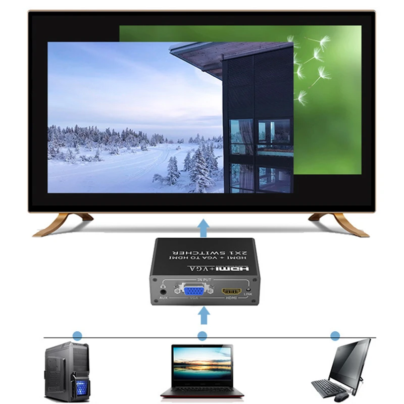 [VGA/HDMI к HDMI] поддерживает VGA/HDMI 2 методы ввода, который представляет собой 2-в-1 продукта. Этот адаптер VGA/HDMI к HDMI поддерживает мониторы высокой четкости или проекторы с разрешением до 1920x1080 @ 60 Гц; Легко подключить старый-стиль VGA выход к телевизорам, мониторам или проекторам, ноутбукам, HDMI вход для потокового видео, игр или общего содержимого.